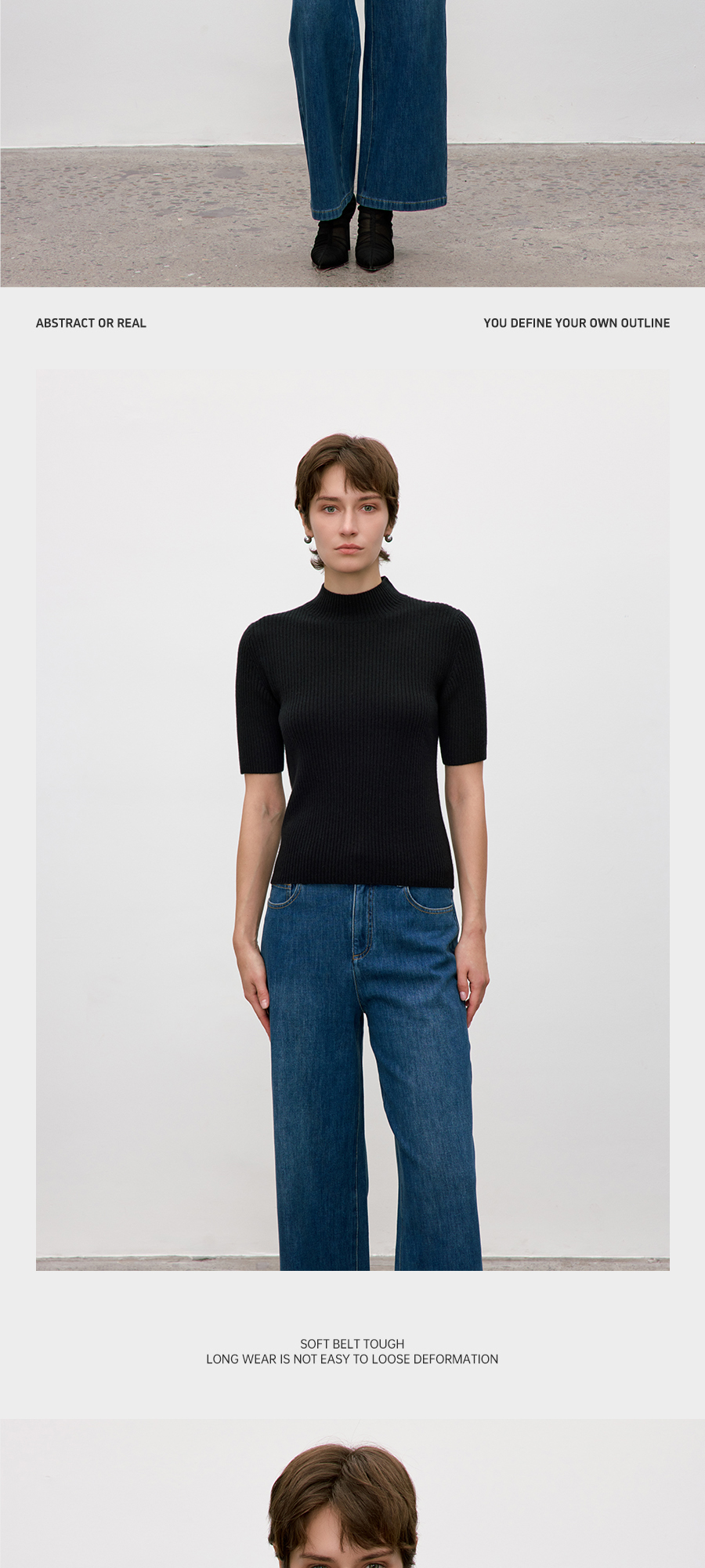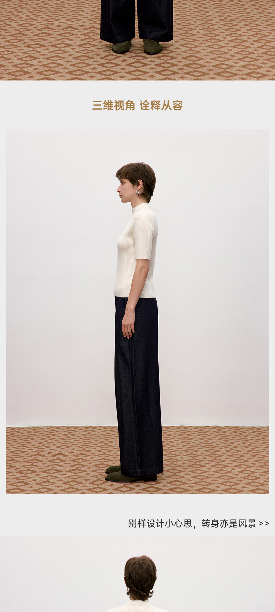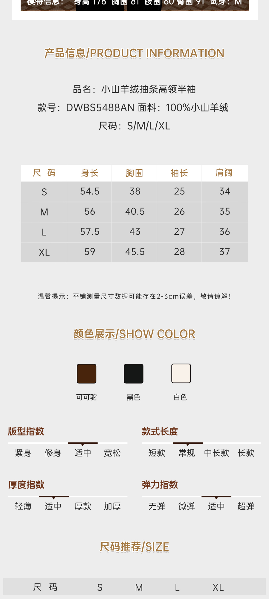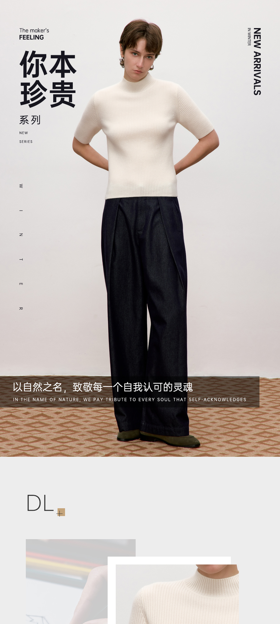 东黎 • 你本珍贵 万物共生-短袖 小山羊绒女士秋季抽条高领半袖 5488
