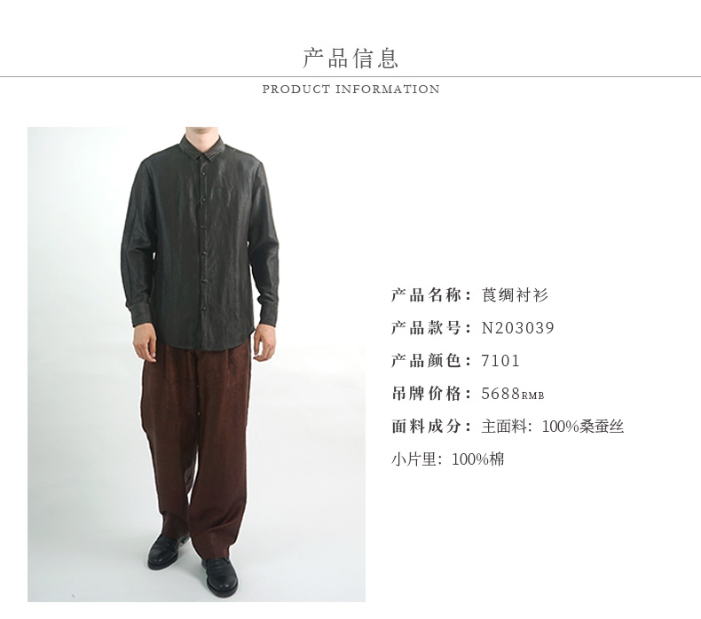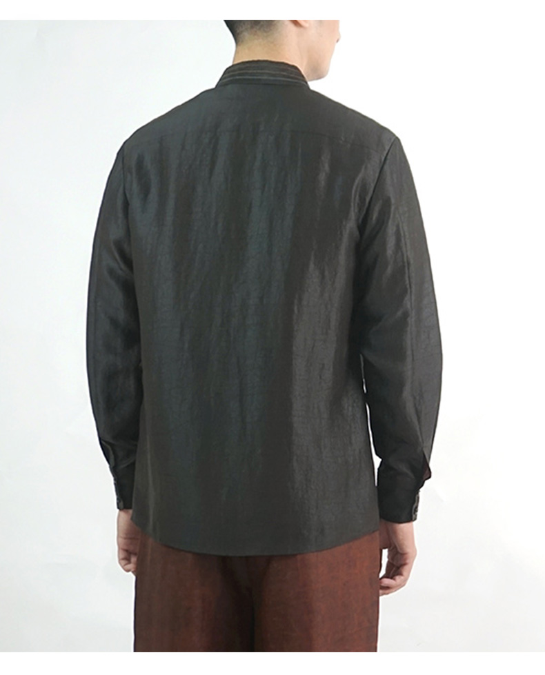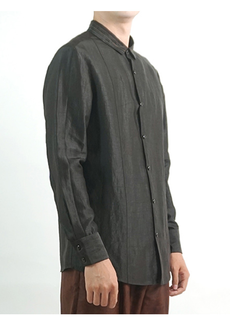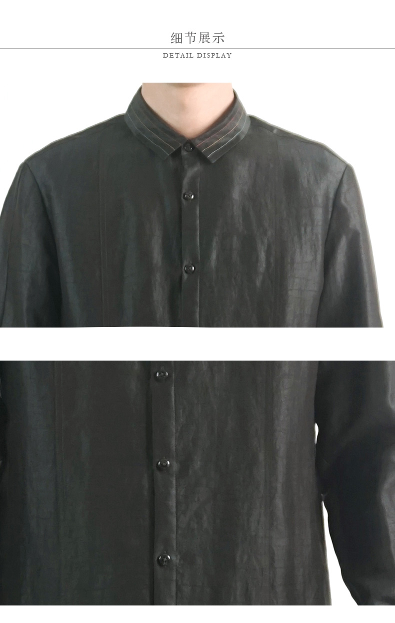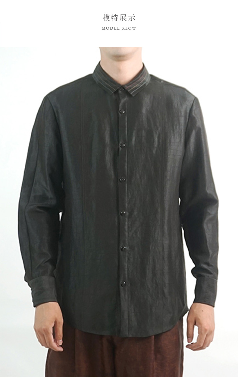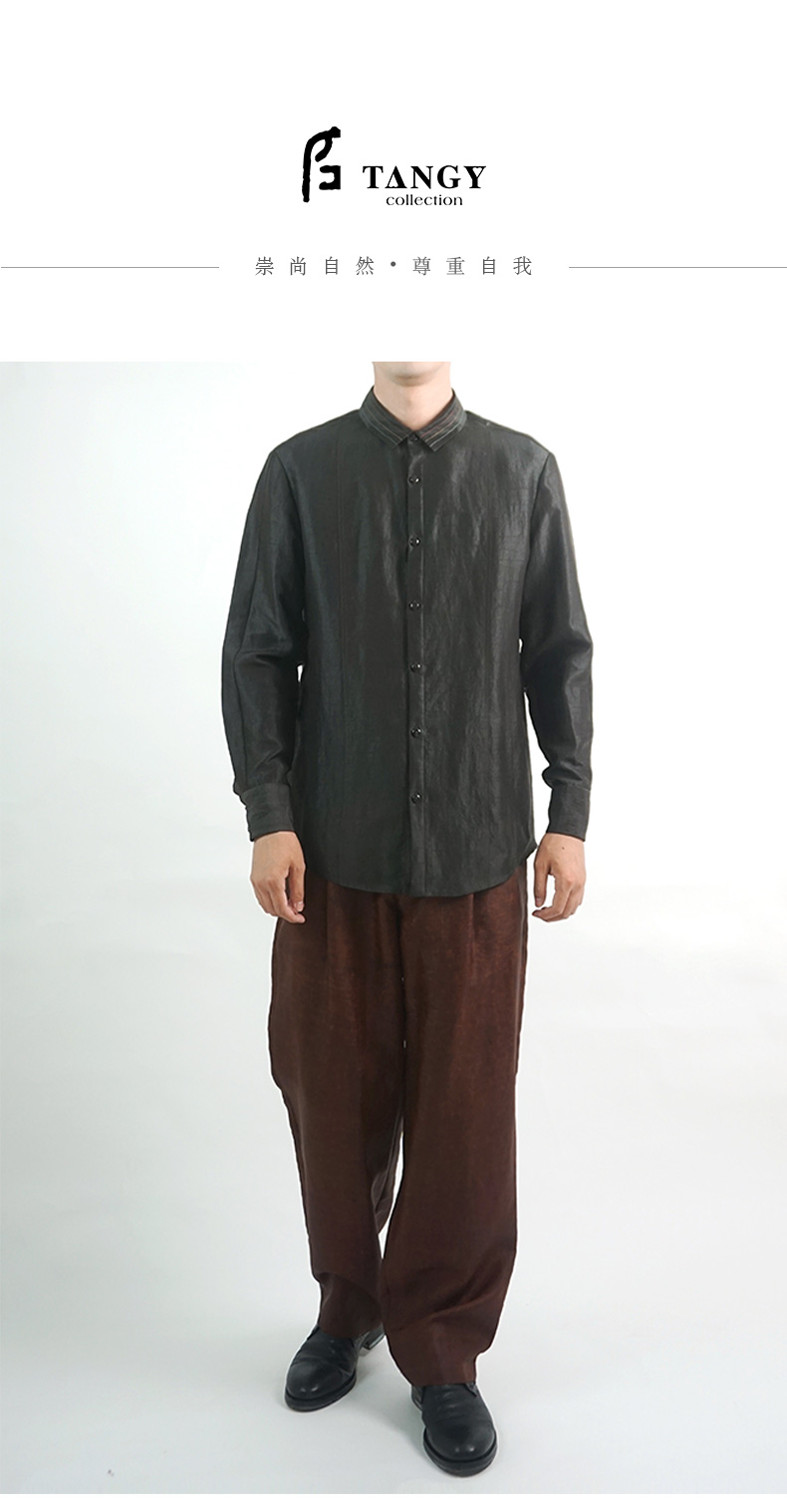TANGY Collection/天意精品春夏新品香云纱男士线迹真丝莨绸衬衫