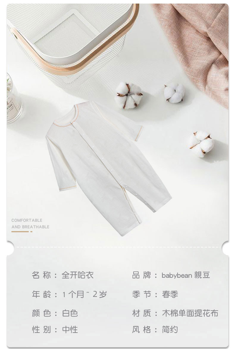 babybean亲豆木棉提花男女宝宝全开哈衣20NY01019N0102