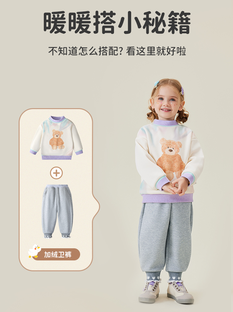 【清仓捡漏】【双面磨毛 5A抑菌】【可可鸭】【120-150】女童秋冬保暖内衣套装