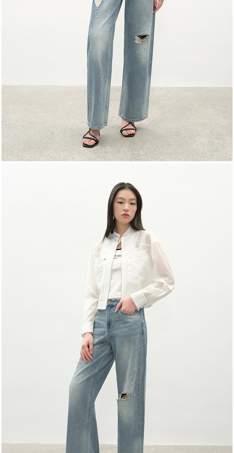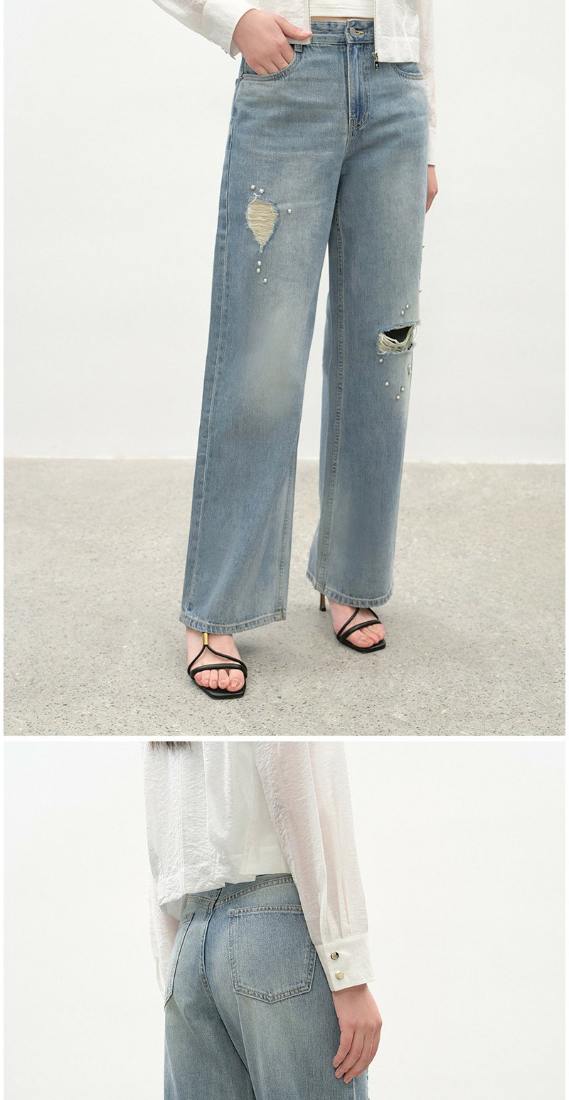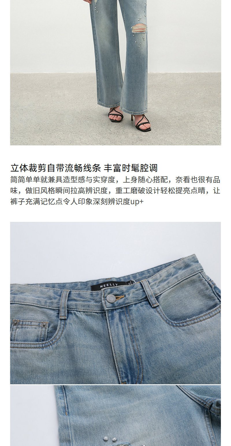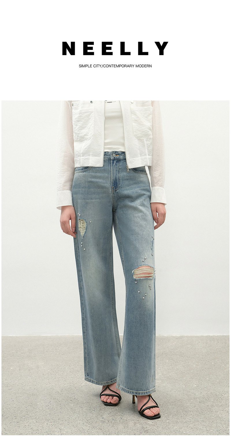 NEELLY纳俪商场同款夏季新款时髦破洞直筒牛仔裤女百搭休闲长裤N26044H04540