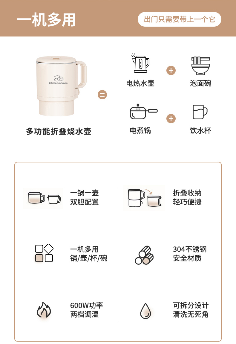 厨创妈咪折叠水壶_CQ-8户外水壶【K】