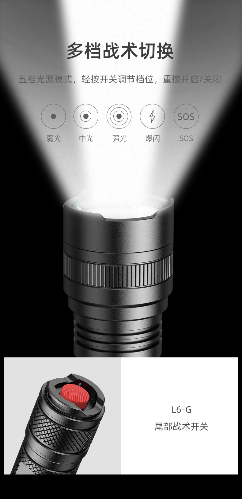 SUPERFIRE神火L6-G手电筒强光远射36W大功率P90可充电户外家用长续航超亮手电