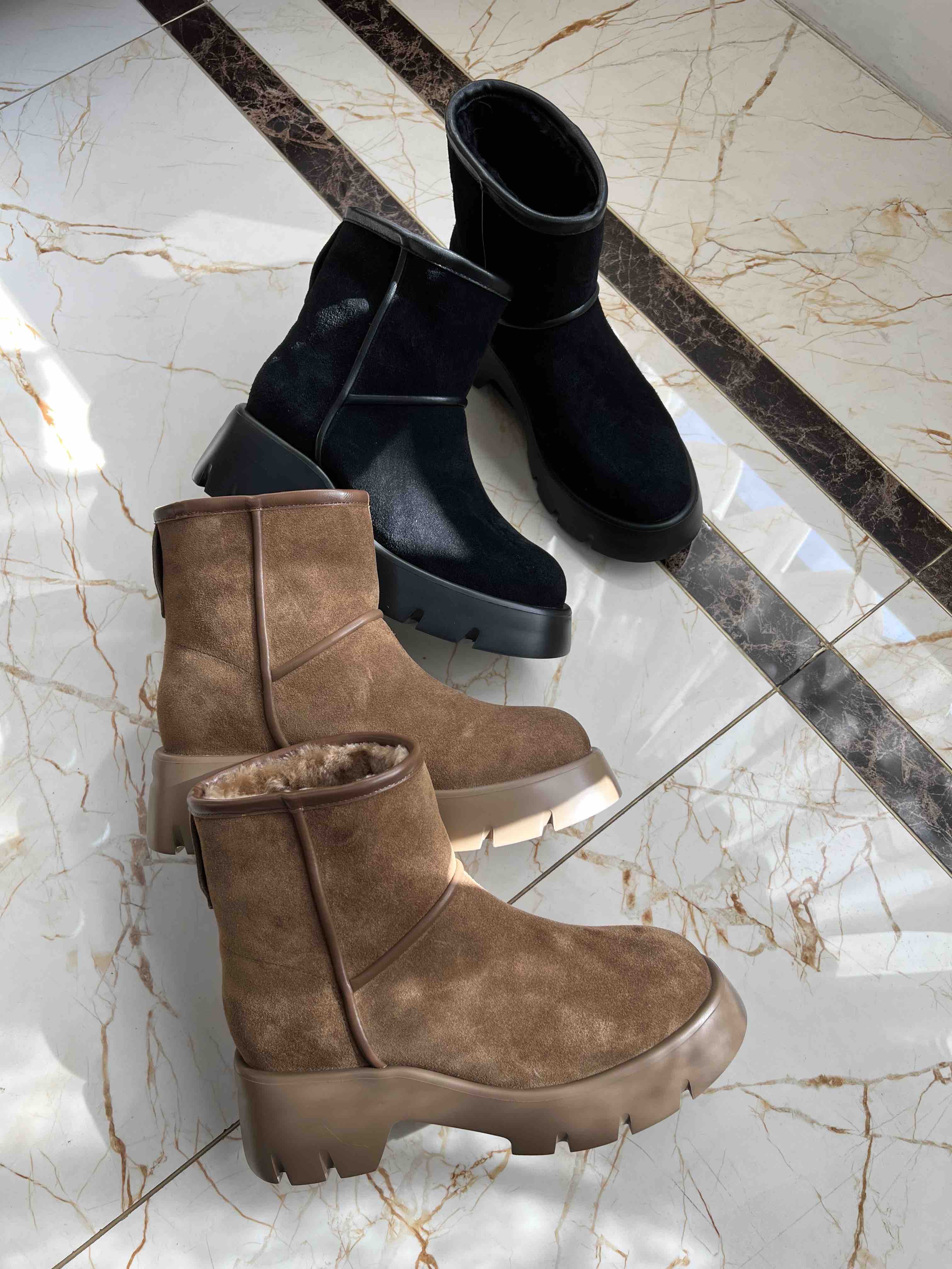 真的是360度看起来都优美,审美是个高级的选项,所有拼接处都有小羊皮包裹。羊反绒加羊皮毛一体,保暖透气不闷,长期穿只留下保暖,不会脚趾头出汗的情况发生。这就是其他材质不能比拟的