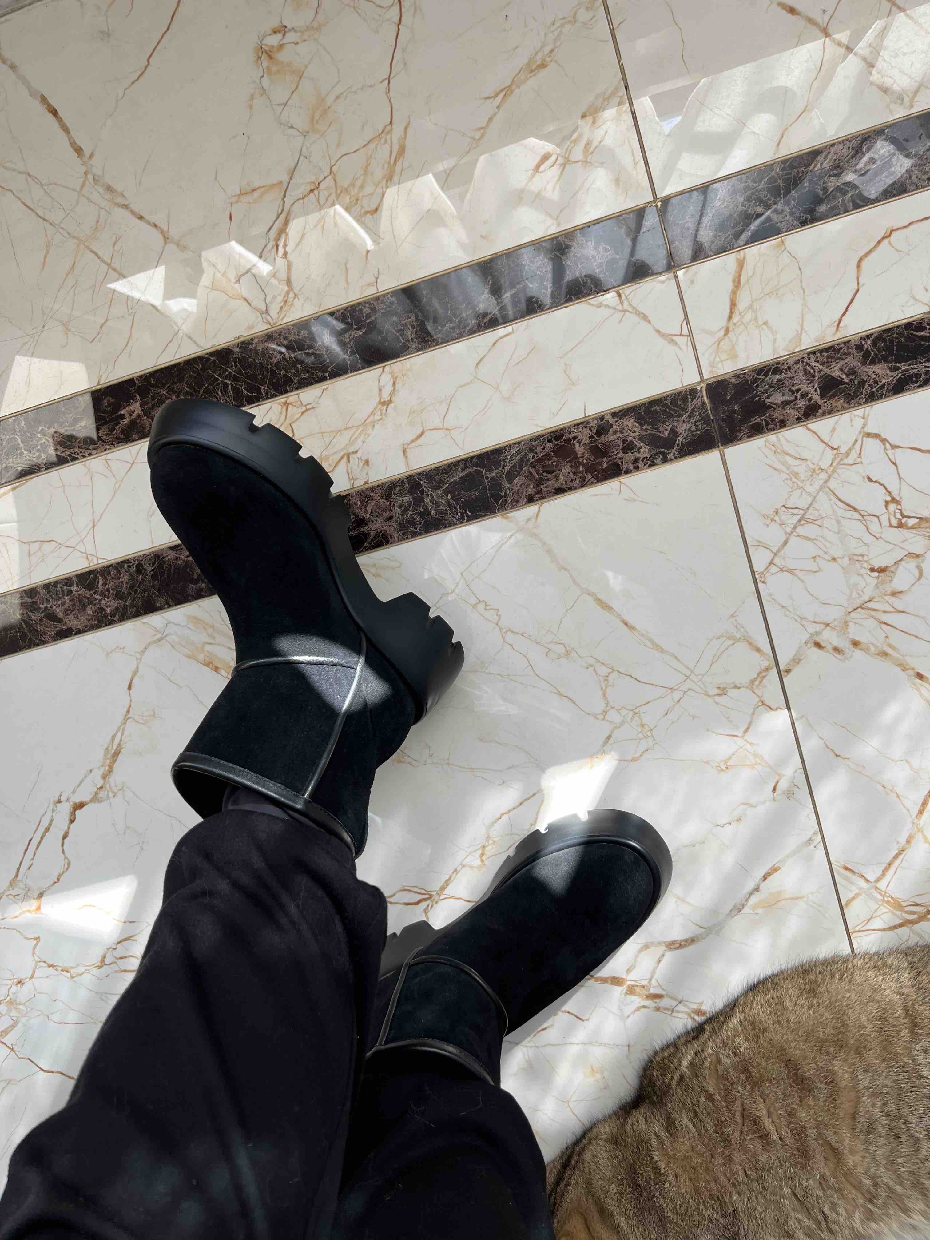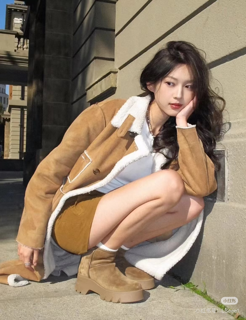 羊反绒贴合羊皮毛一体的好处,就在于具有皮毛一体的丰盈细腻软糯,又能克服羊皮毛一体没那么结实的不足。毕竟羊皮毛一体通常做大衣,做为靴子牢固度有点担心,贴合一层羊反绒,那么就没有后顾之忧了