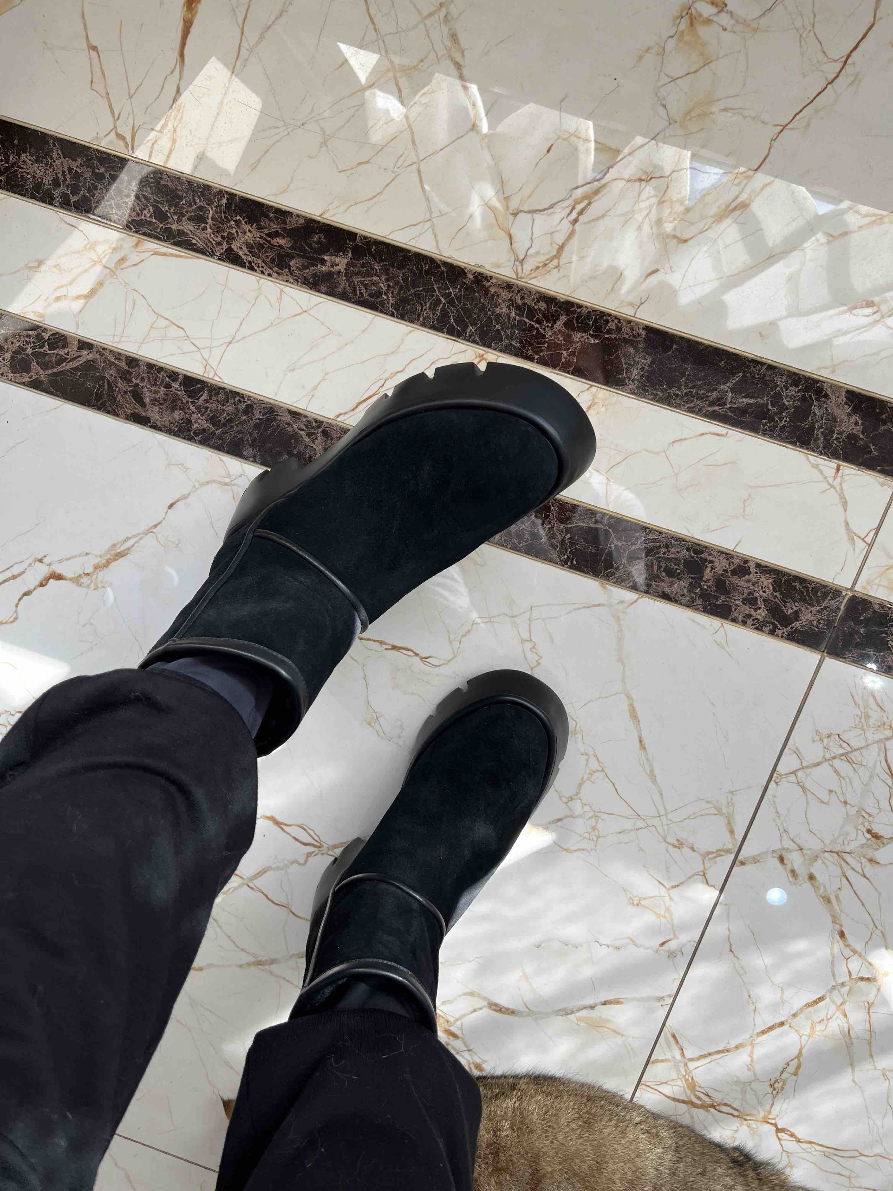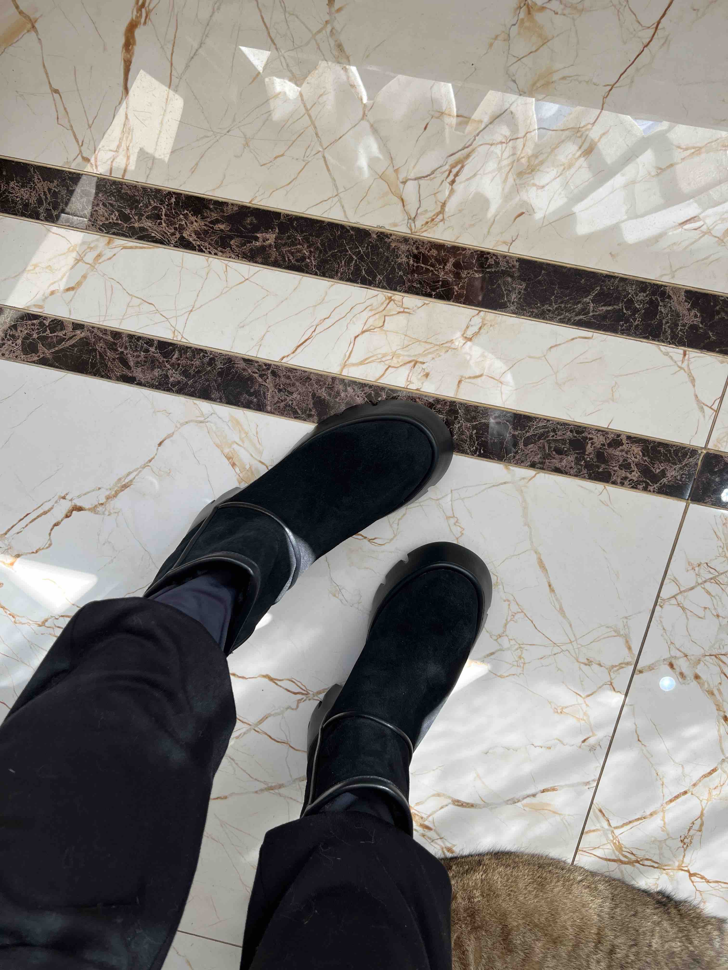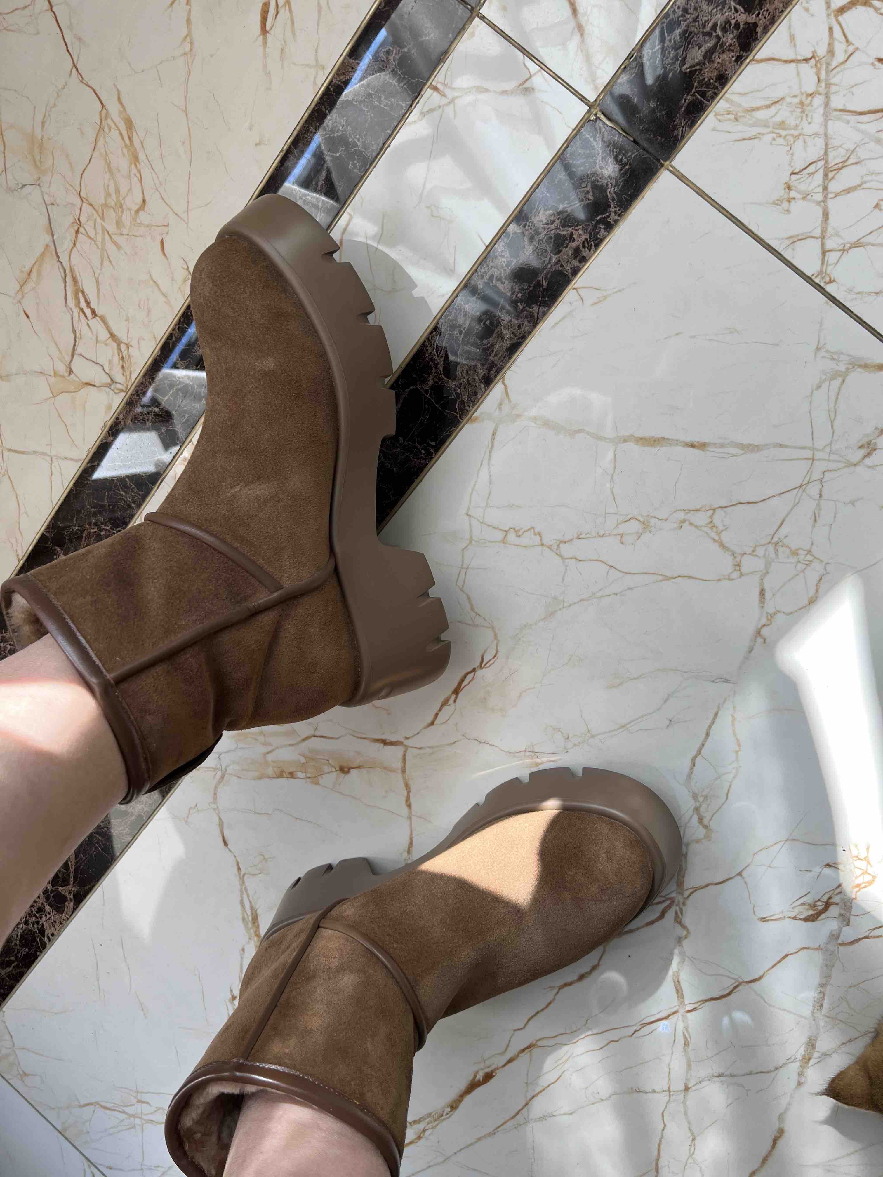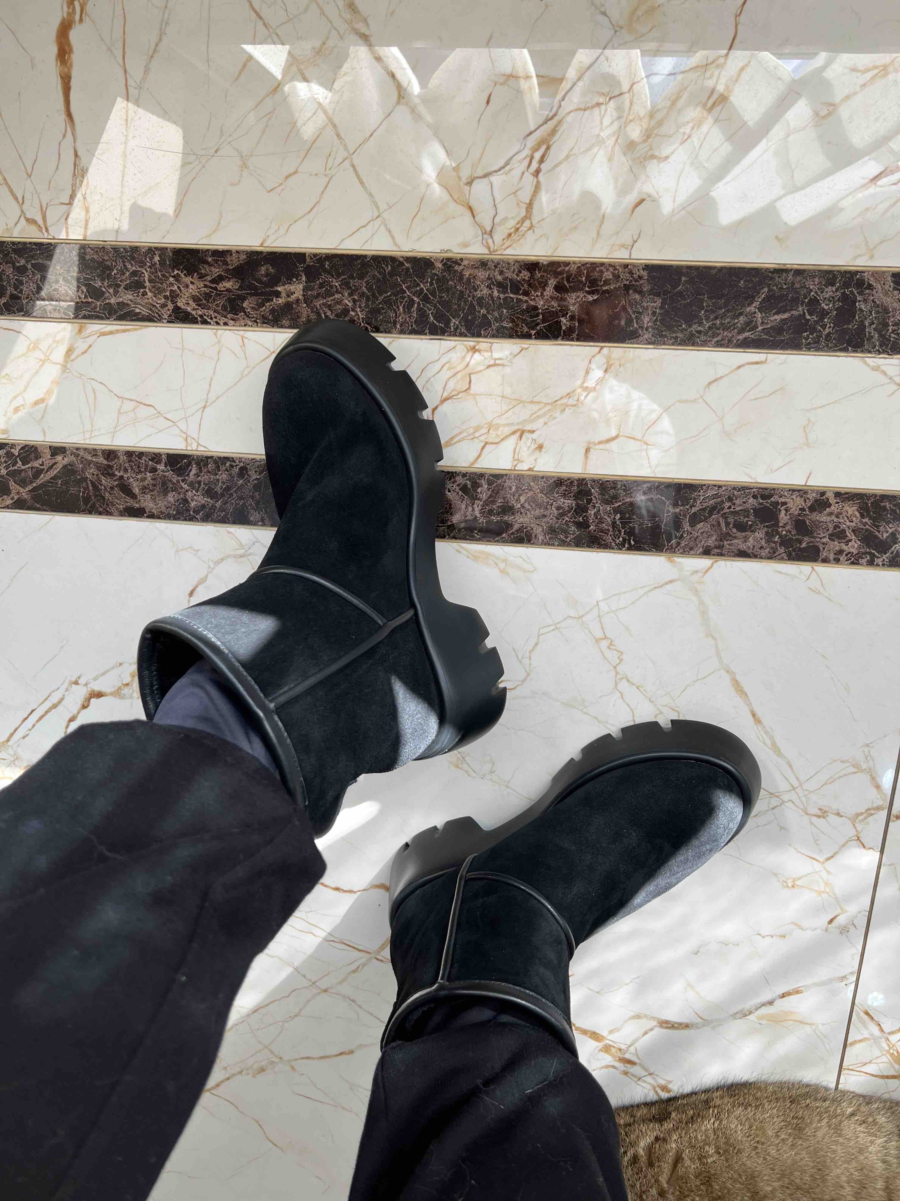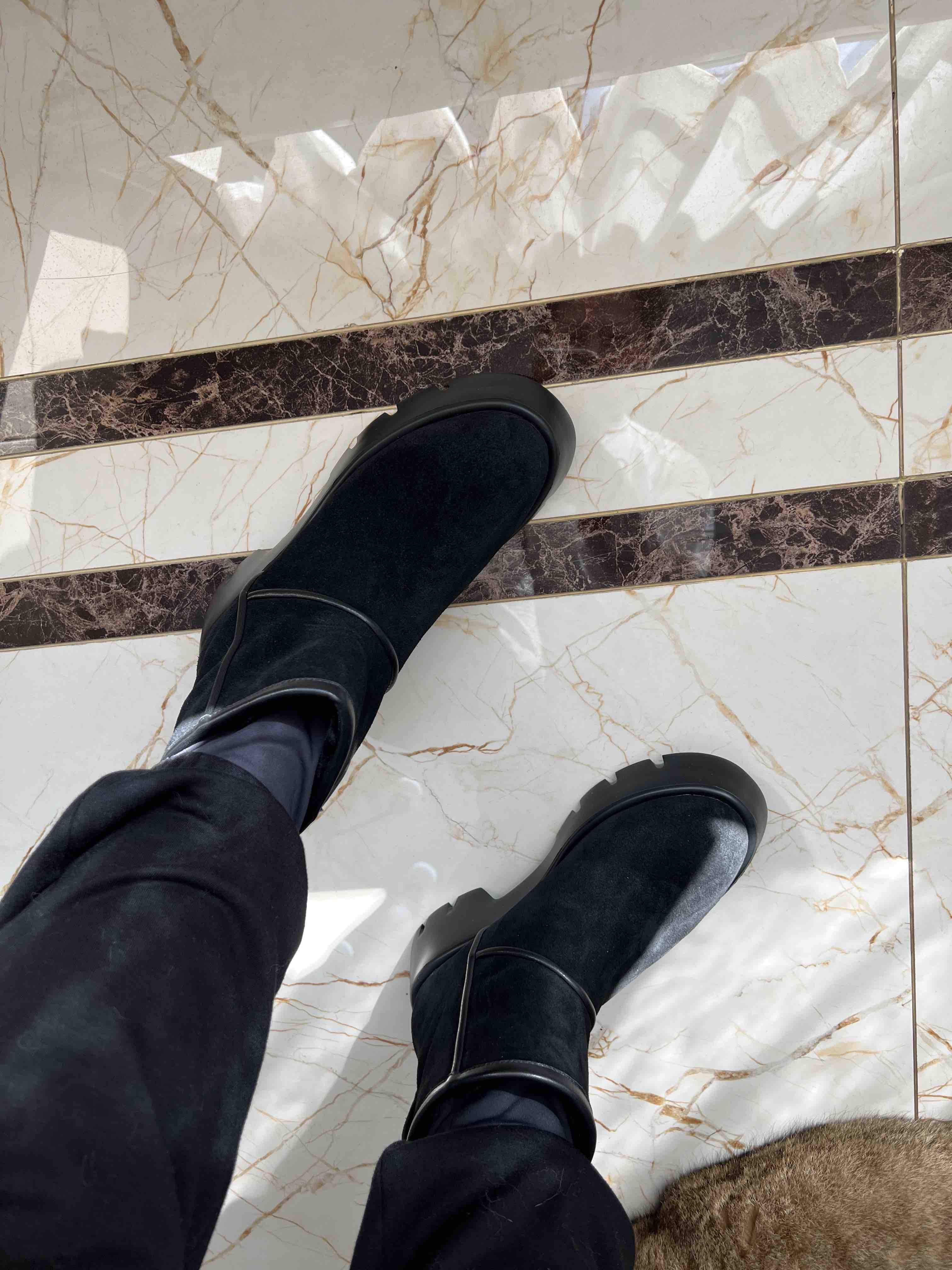 实拍来,鞋型千锤百炼,饱满复古圆头,流畅秀气大身,同色系超轻厚底,整个拼接都用小羊皮包边,可以算得上非常细致了。鞋面是细腻羊反绒,内里是真正的皮毛一体。仔细看高密柔滑细腻亲肤的内衬嗷嗷嗷