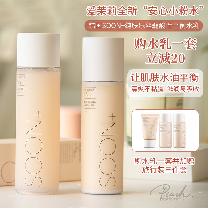 韩国爱茉莉SOON+纯肤乐丝平衡保湿弱酸性水乳安心小粉水修护肌肤