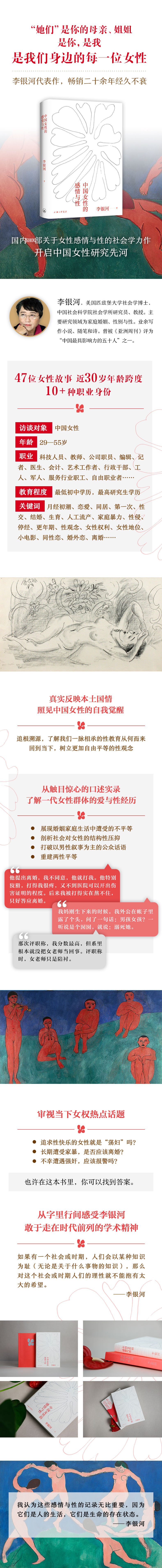中国第一部关于女性感情与性的社会学专著,家喻户晓的女性主义入门读本。打破以男性叙事为主的公众话语,倾听女性的声音——每一位女性,都有她自己的话要说。