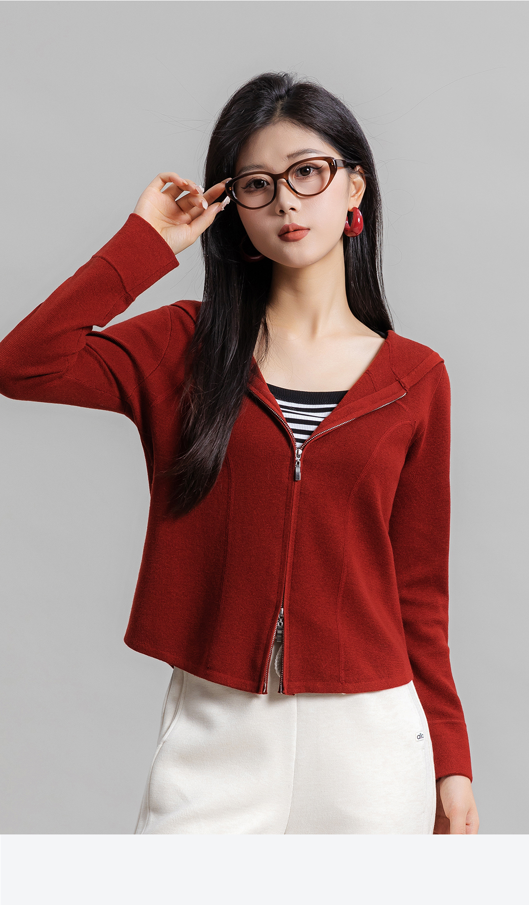 冬上新连帽双拉链修身显瘦毛衣外套1254002