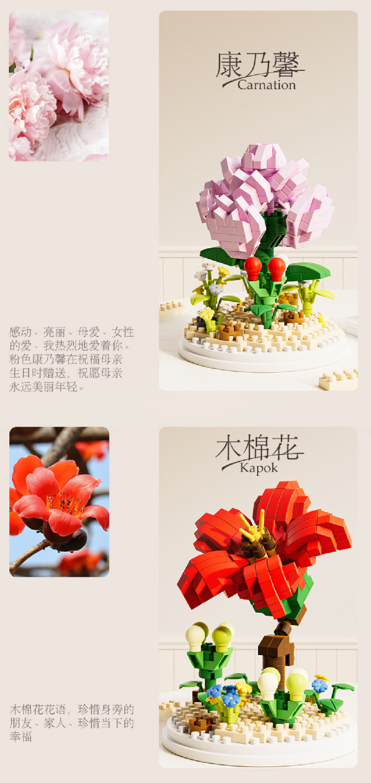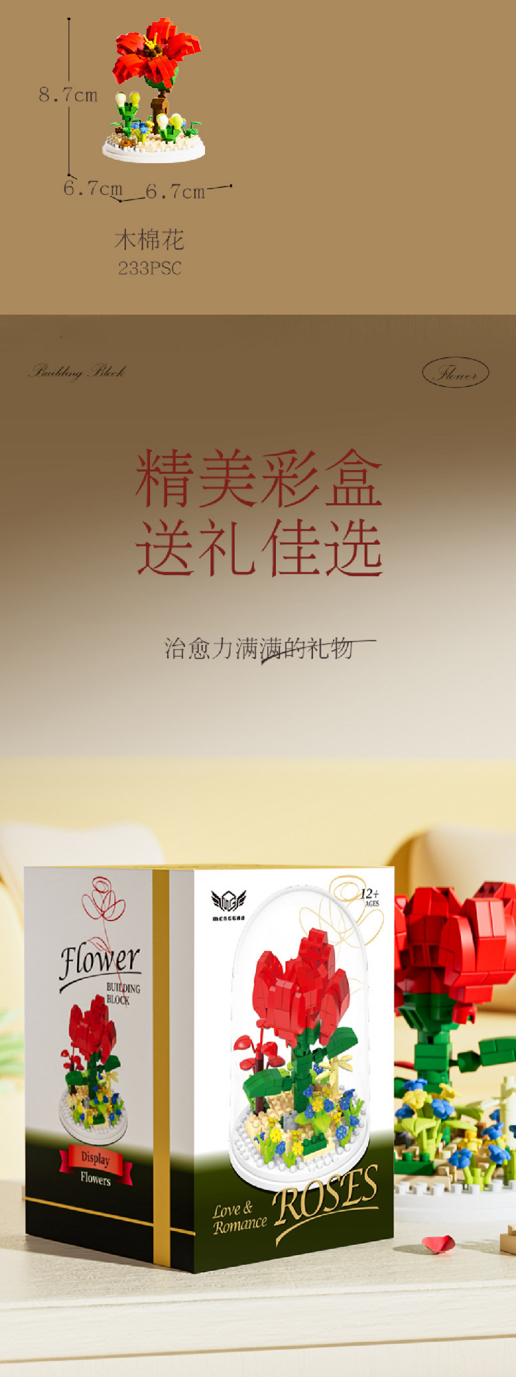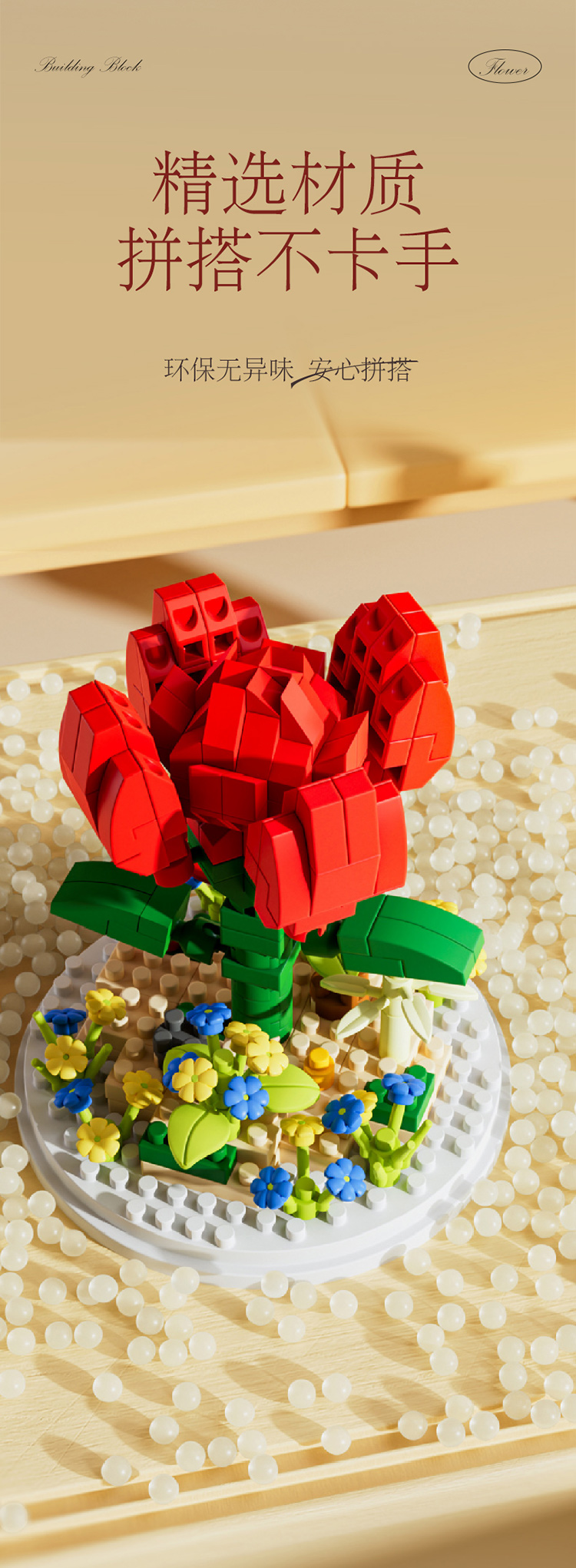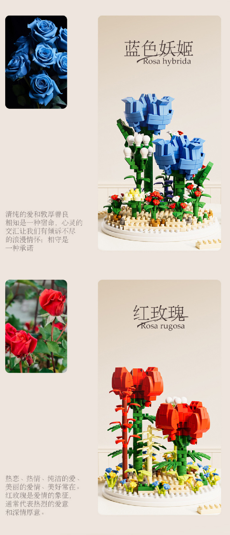 【七夕礼物】积木花玩具兼容乐高带灯光永生花 益智拼装小颗粒女孩礼物