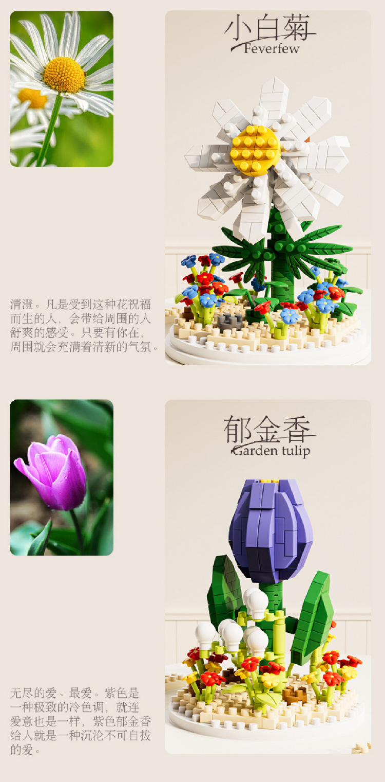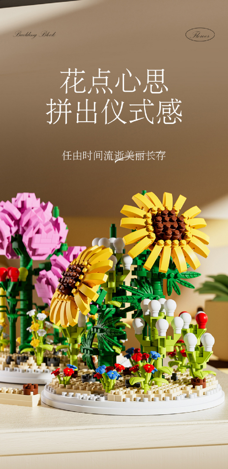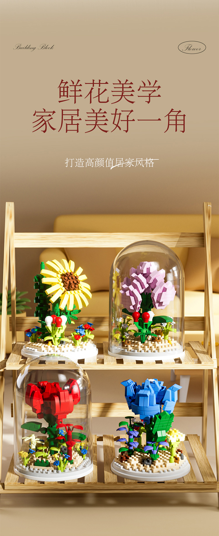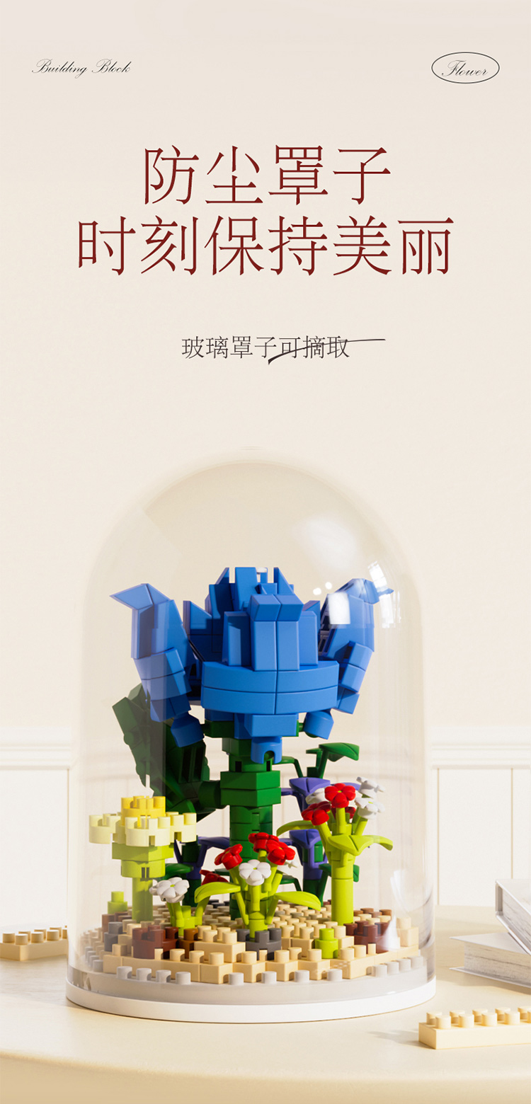 【七夕礼物】积木花玩具兼容乐高带灯光永生花 益智拼装小颗粒女孩礼物