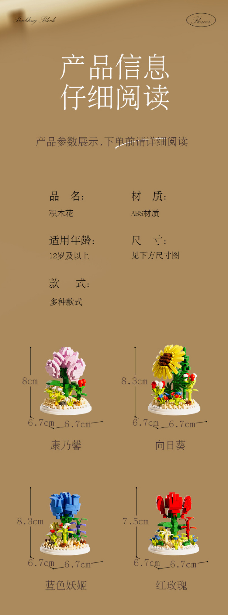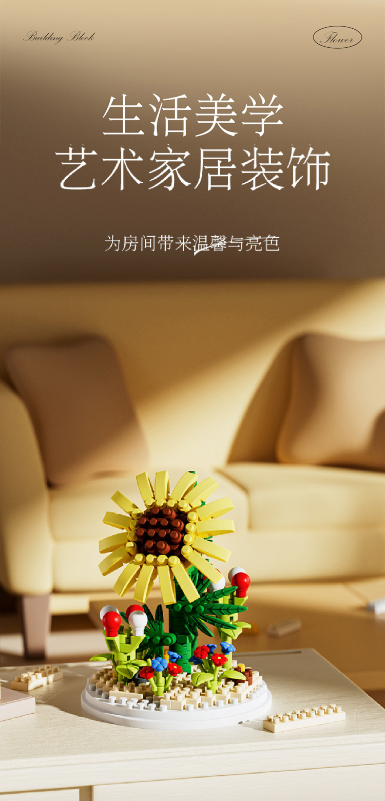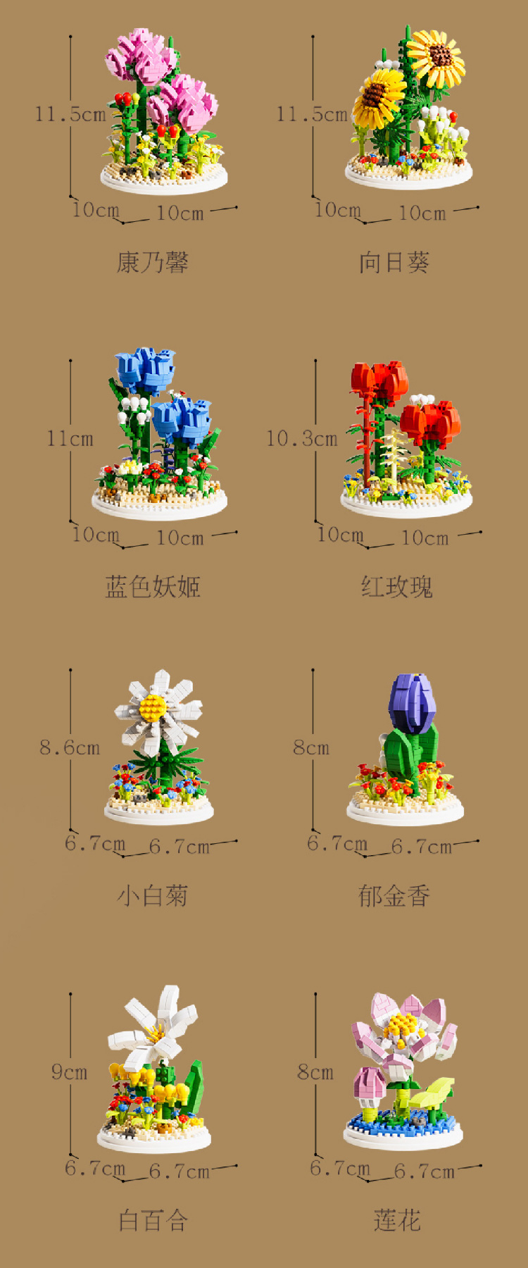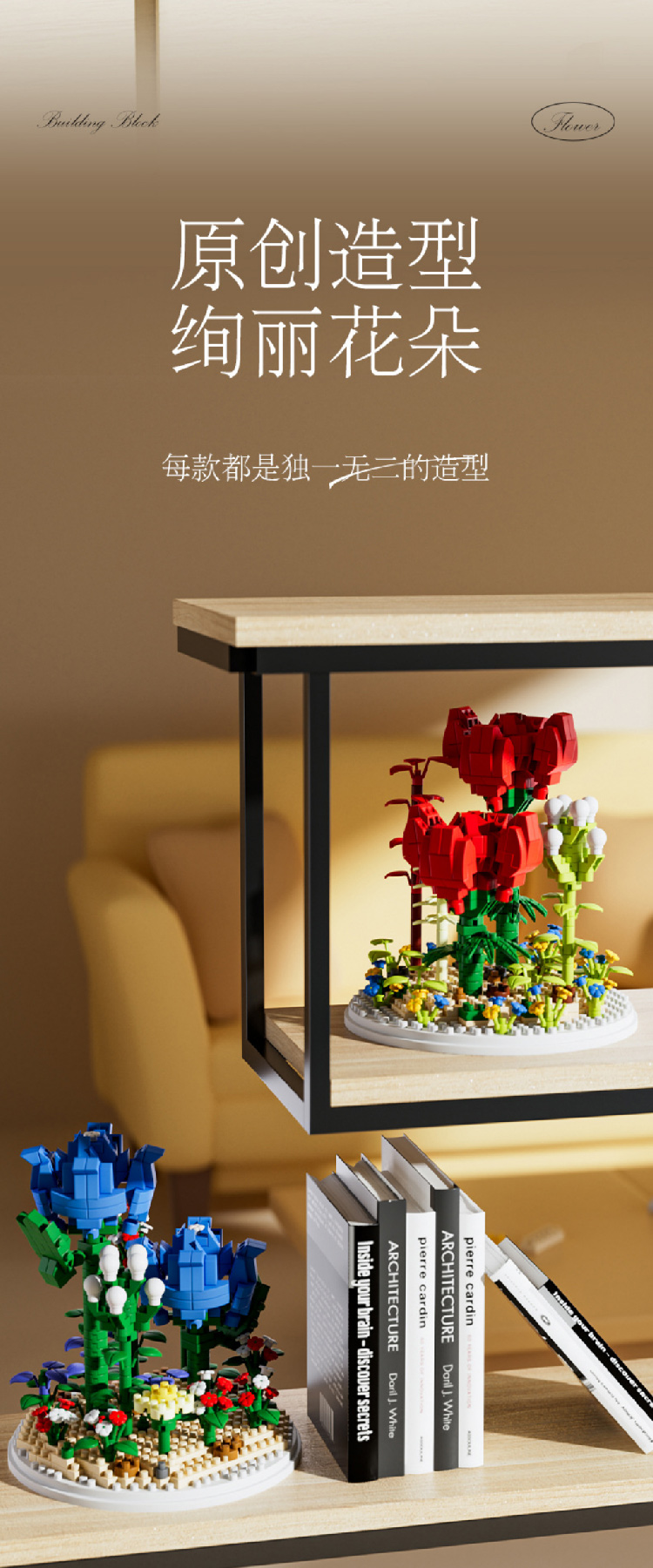 【七夕礼物】积木花玩具兼容乐高带灯光永生花 益智拼装小颗粒女孩礼物