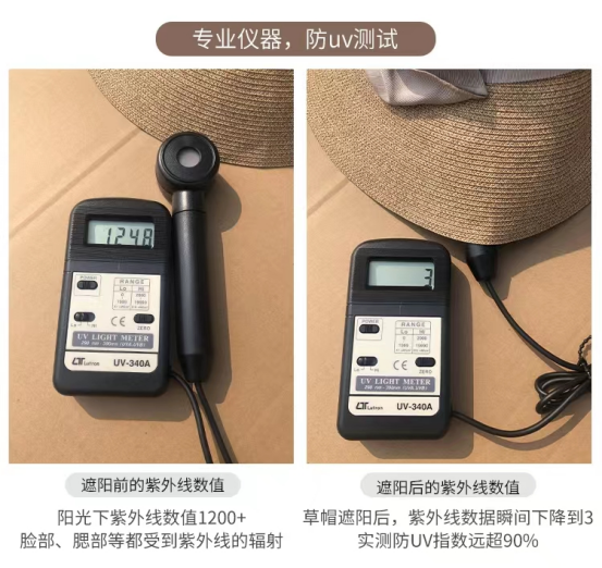 咱们的草帽,经测试可以有效隔离紫外线!