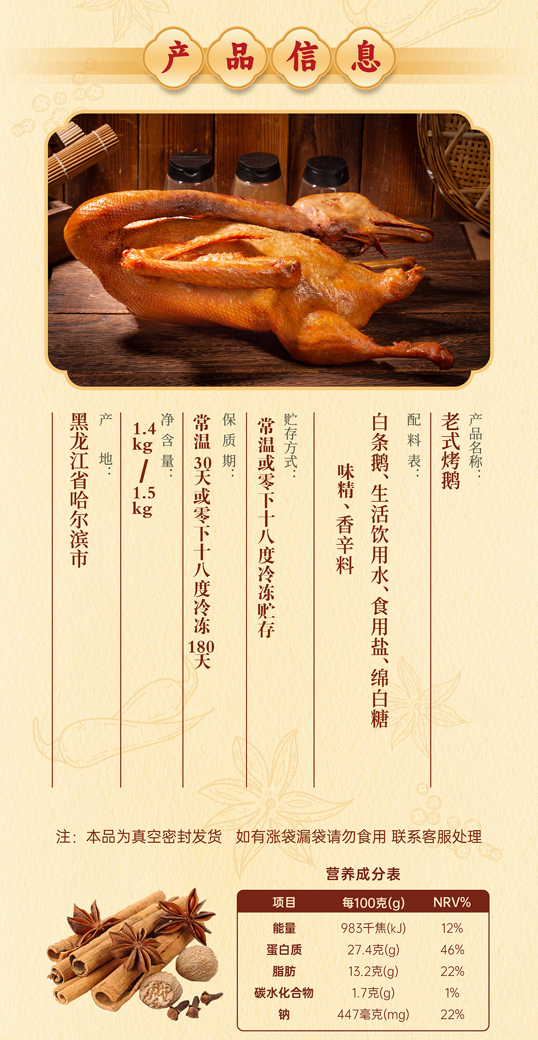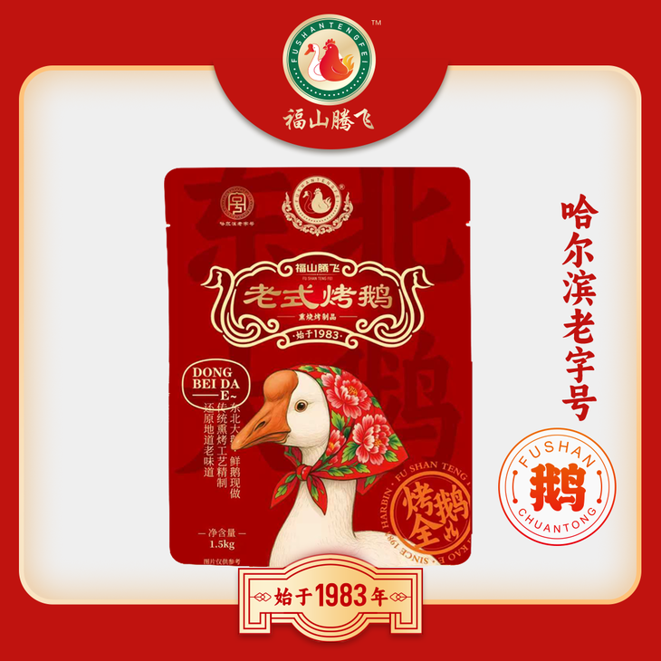 疯抢中!!【哈尔滨老字号·始于1983】东北老式烤鹅 传统老式熏烤工艺 肉质鲜香 软嫩脱骨 香而不腻 老少皆宜 高档袋装/2.8-3.5斤