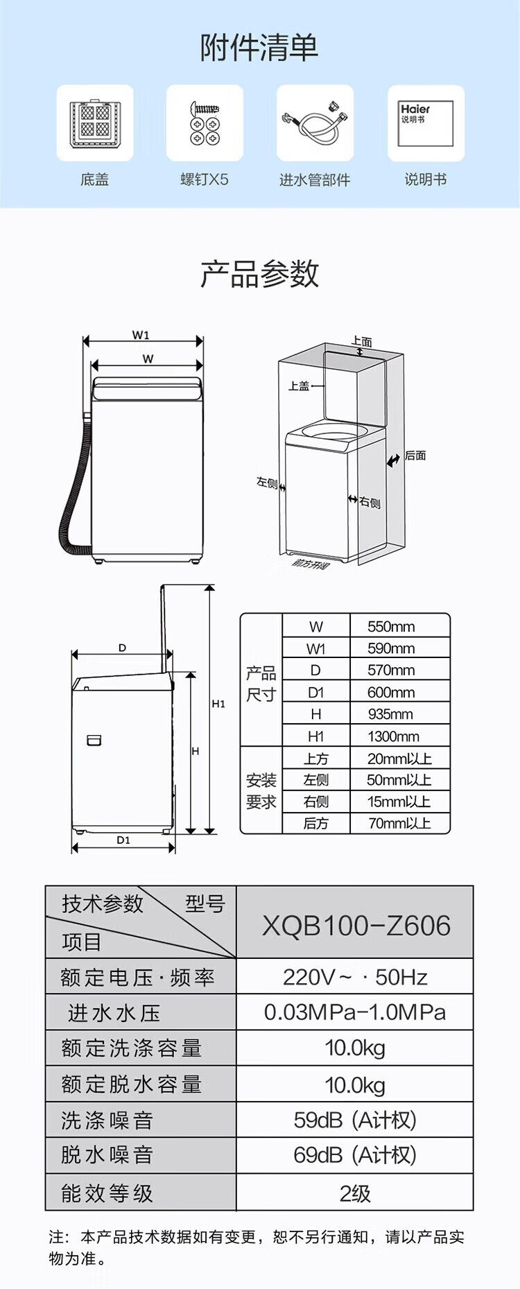 海尔(Haier)10公斤 大容量 家用 全自动波轮洗衣机 自编程 除螨 洗漂脱可调 速洗XQB100-Z606