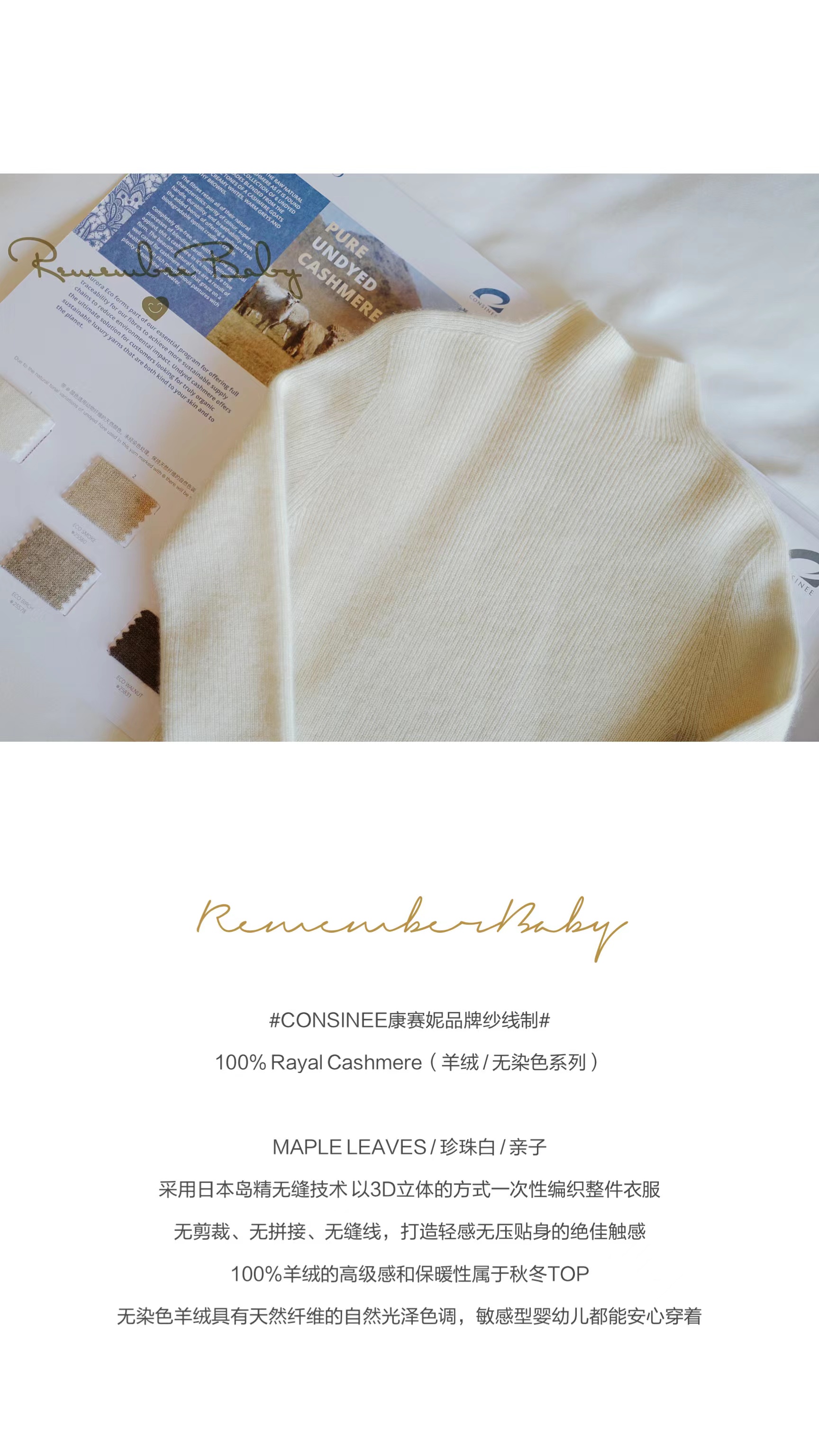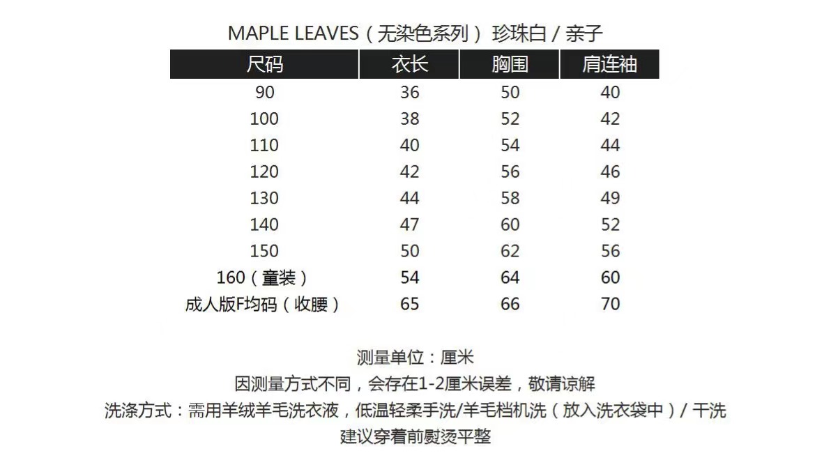 现货 / MAPLE LEAVES | 康赛妮100%羊绒无缝打底上衣 珍珠白 / 经典黑 亲子款