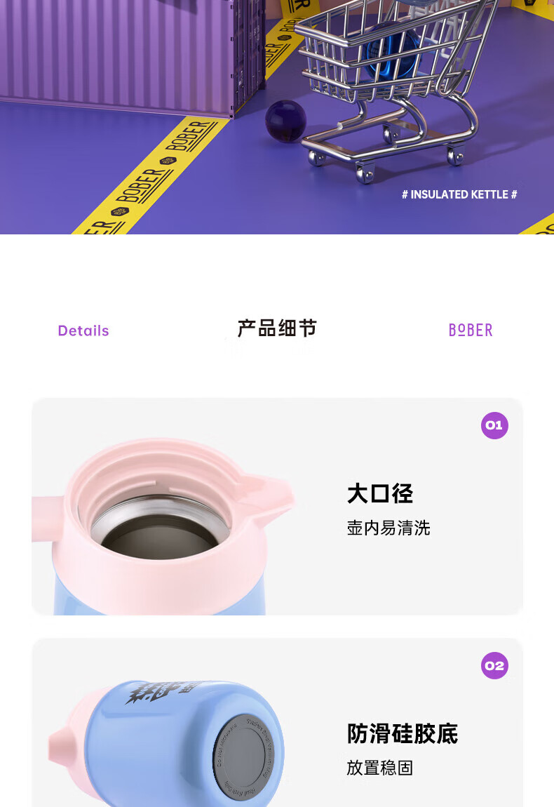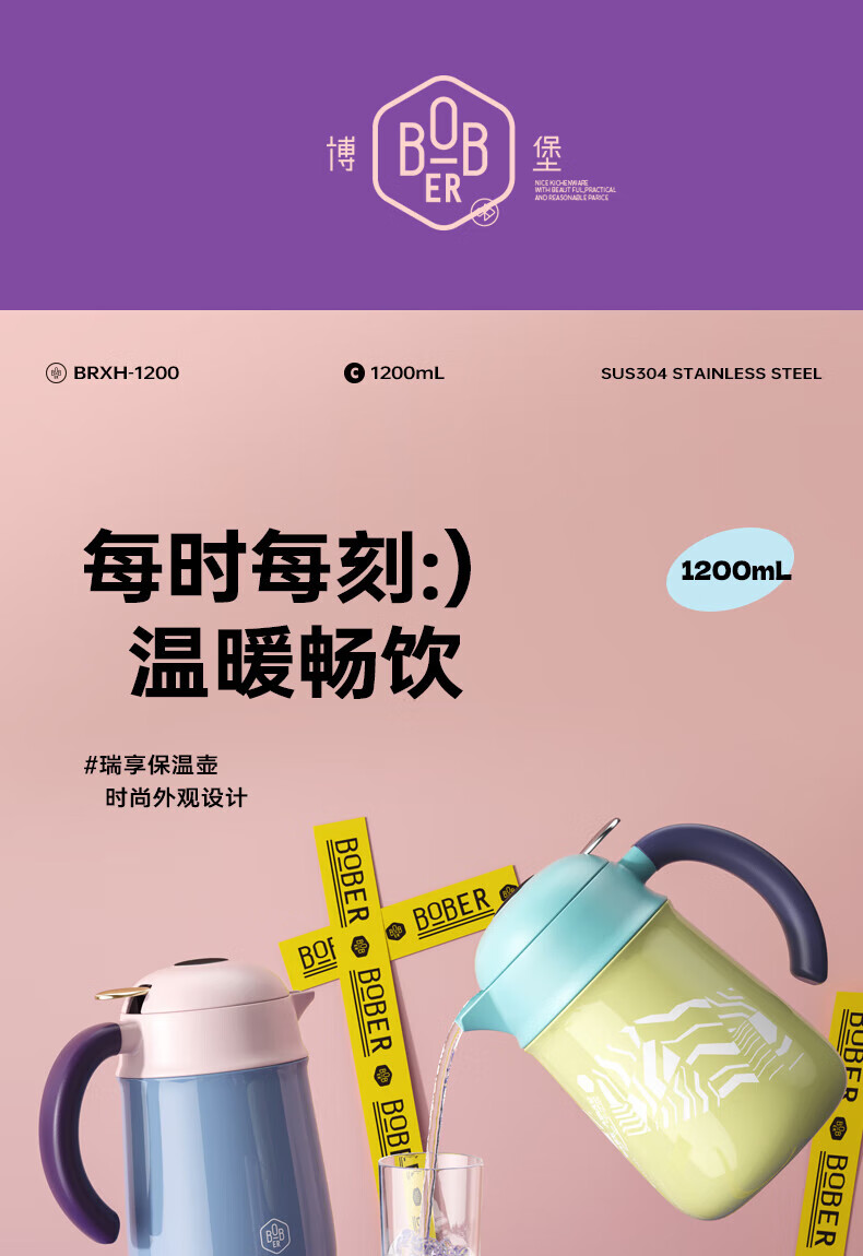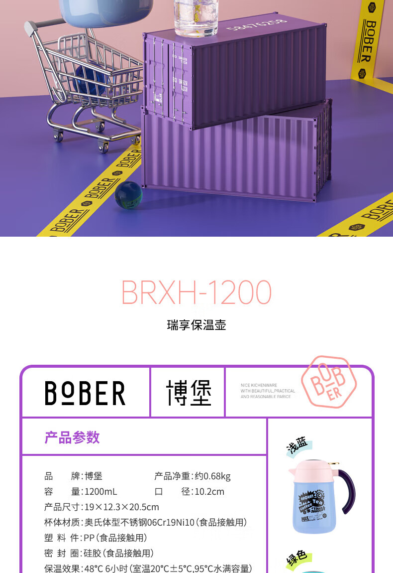博堡瑞享保温壶浅蓝10404BRXH-1200BL