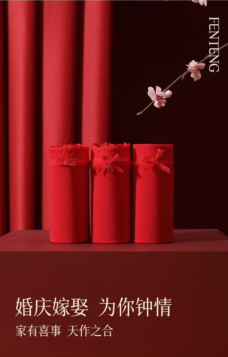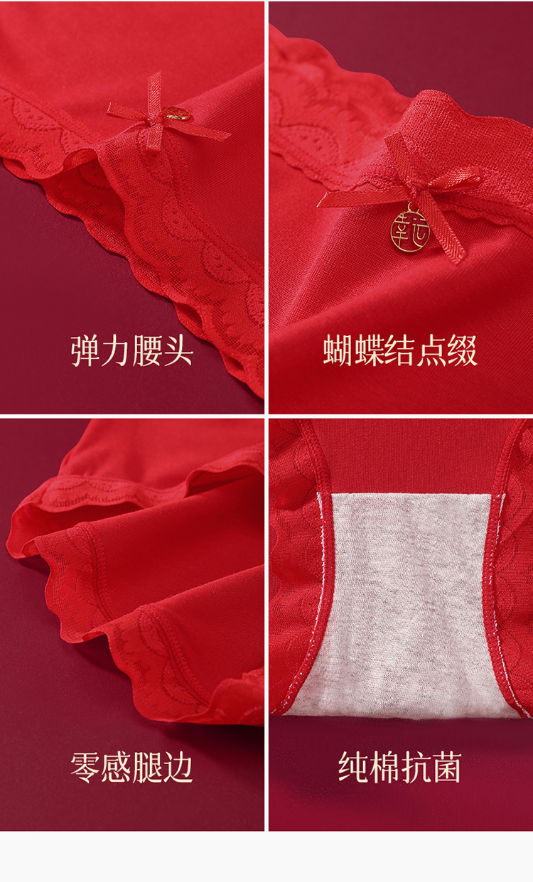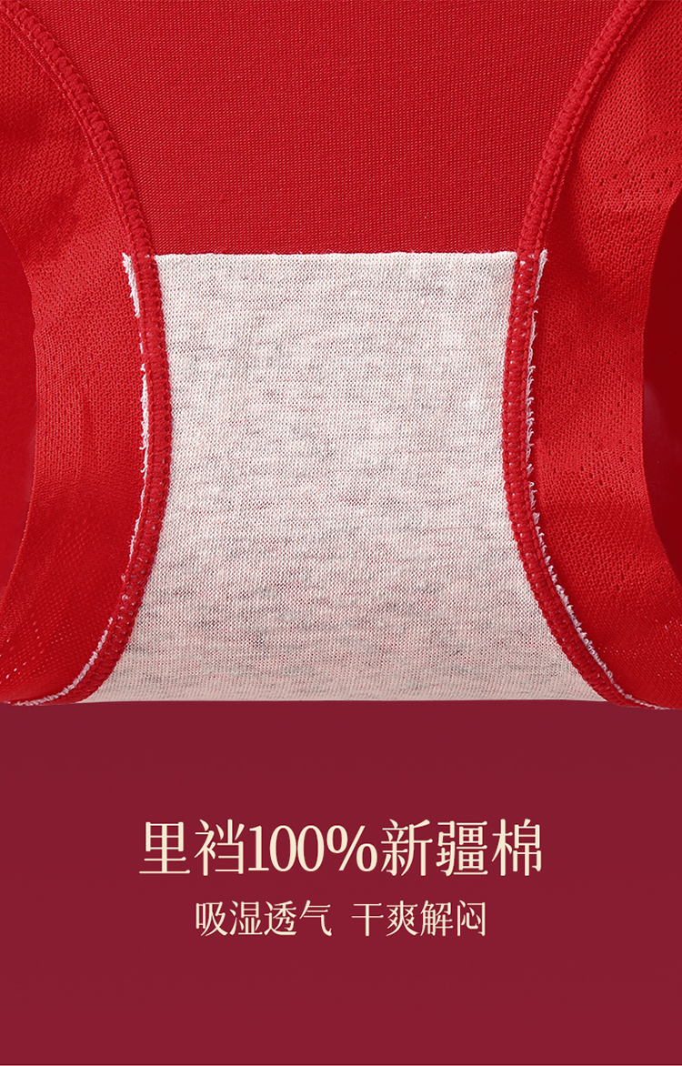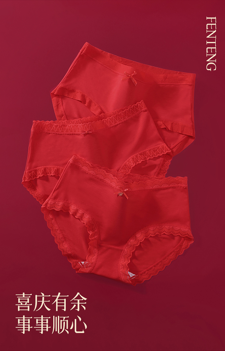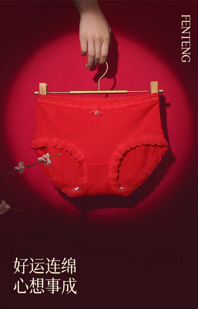 【品牌优选】芬腾女士大码内裤本命年大红色抗菌纯棉裆结婚中腰三角裤
