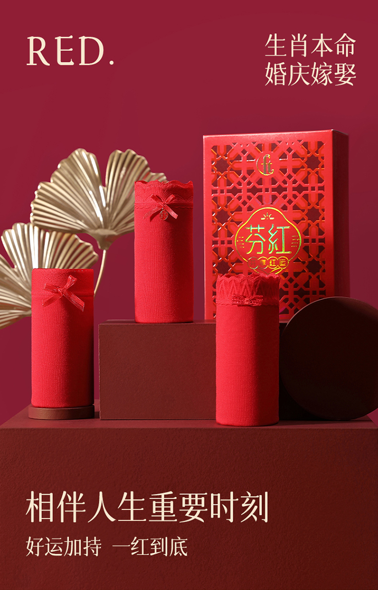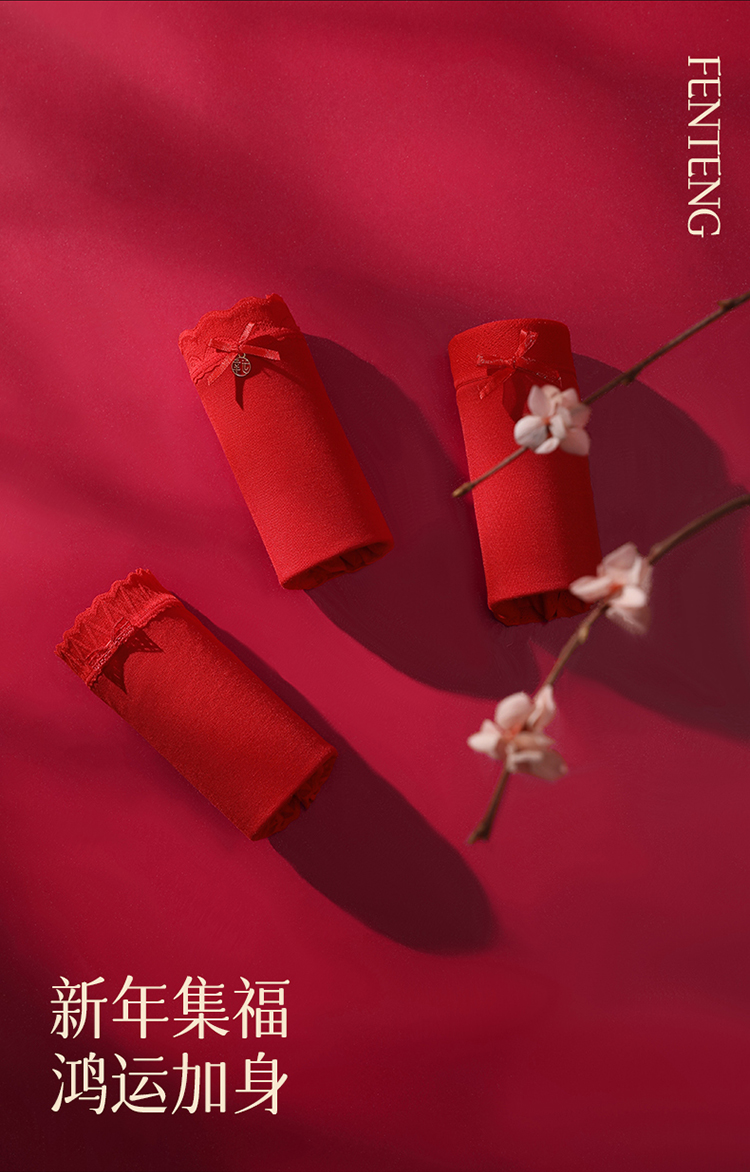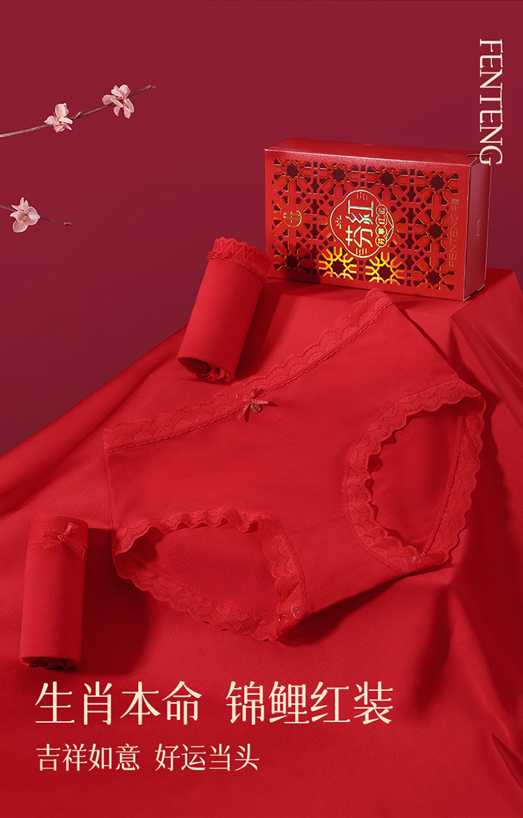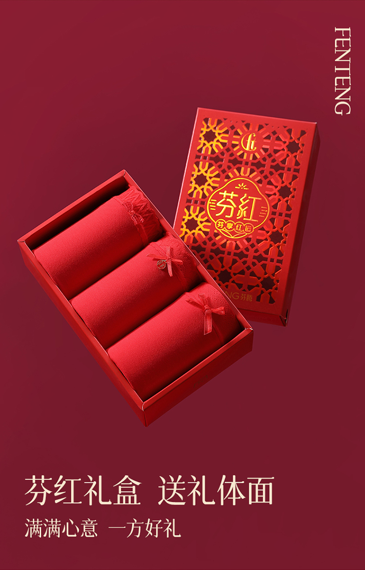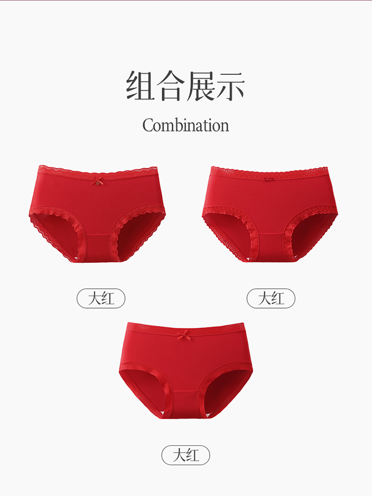 【品牌优选】芬腾女士大码内裤本命年大红色抗菌纯棉裆结婚中腰三角裤