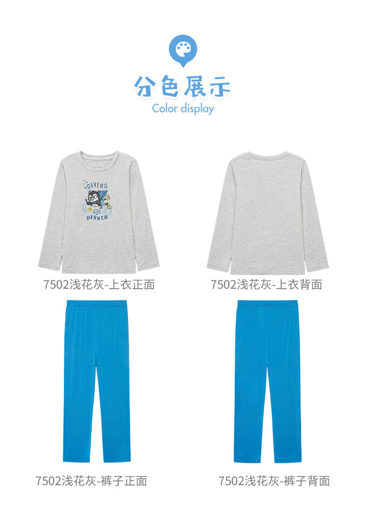 【印花莫代尔】SCHIESSER KINDER舒雅童装男童莫代尔圆领长袖九分裤家居套装3B/16820H