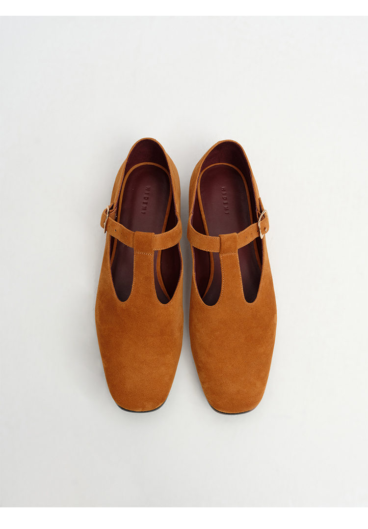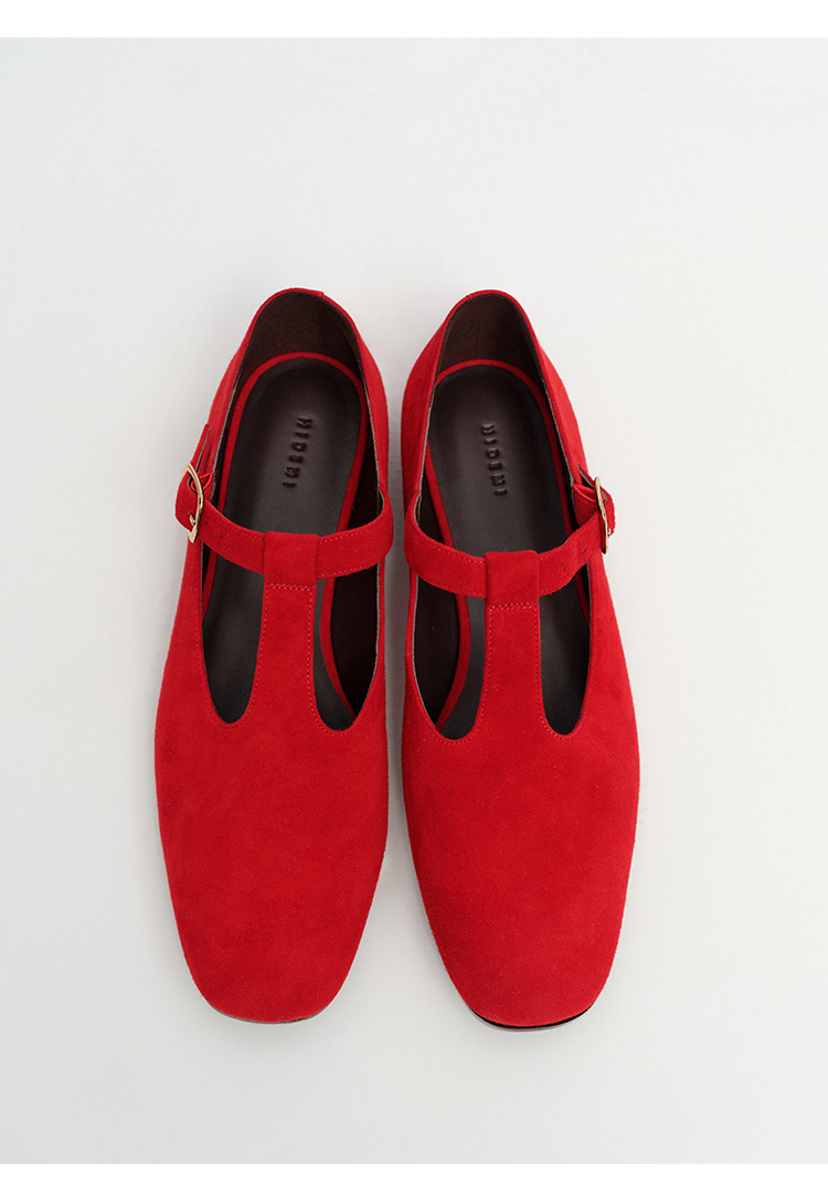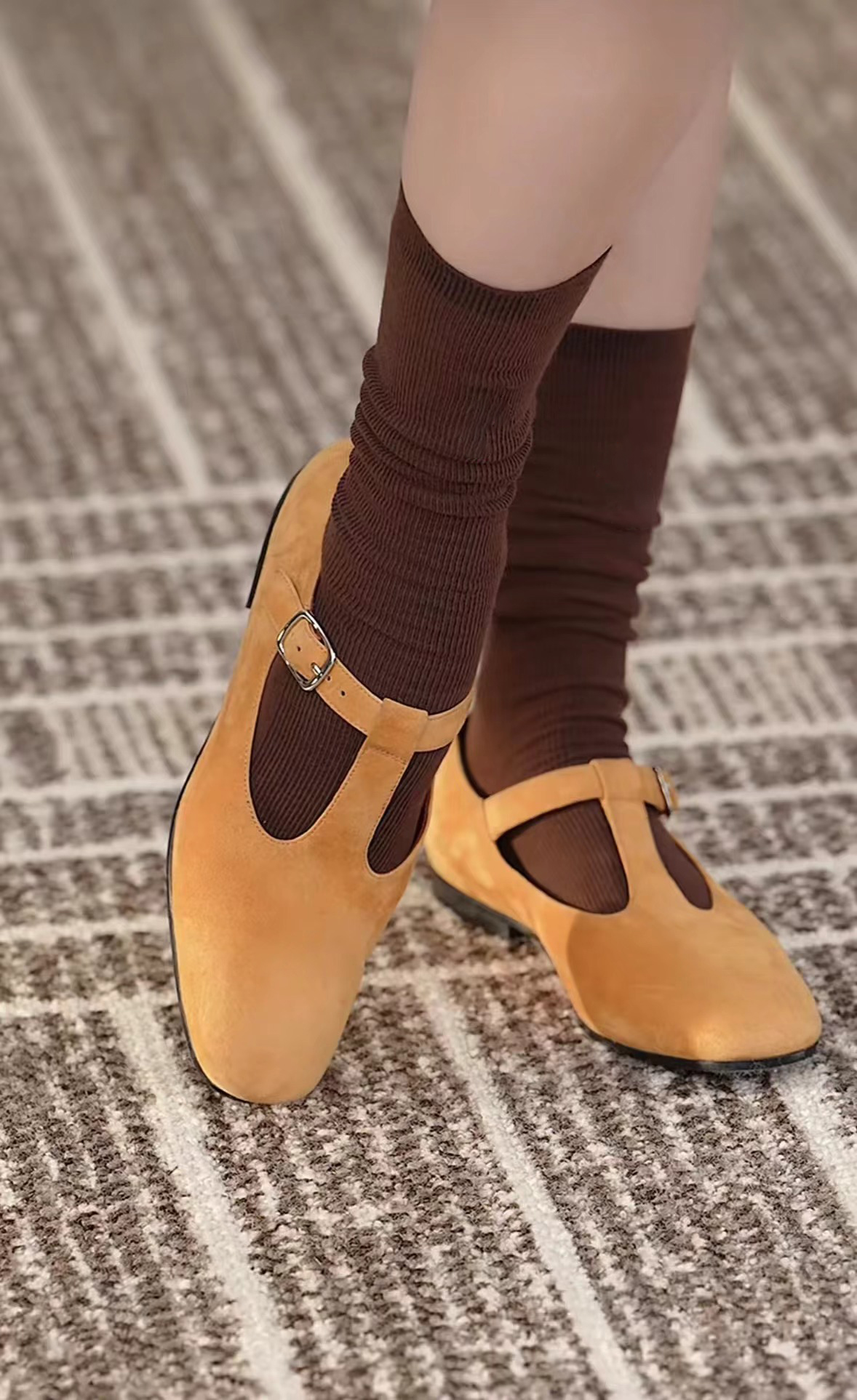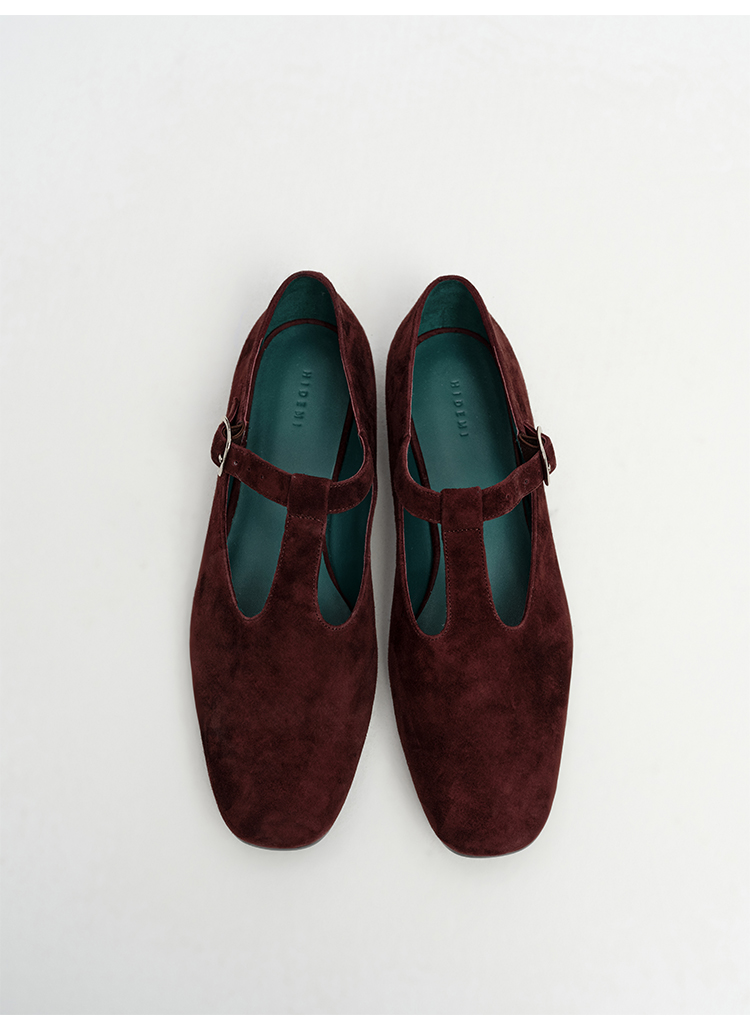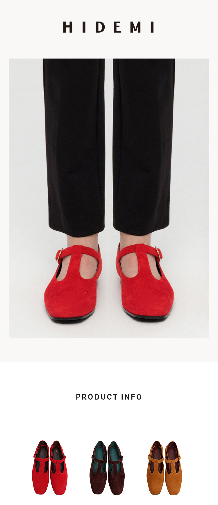 HIDEMI 【董生活同款】进口做旧麂皮复古方圆头宽带玛丽珍平底鞋 复古红/姜黄色/巧克力棕