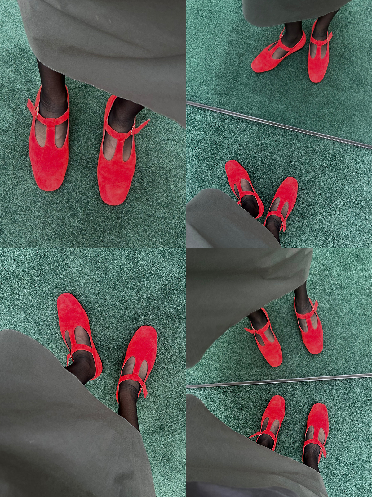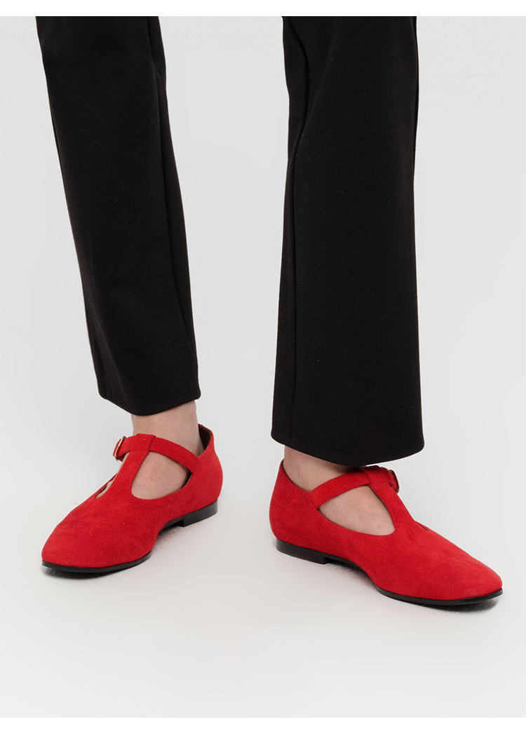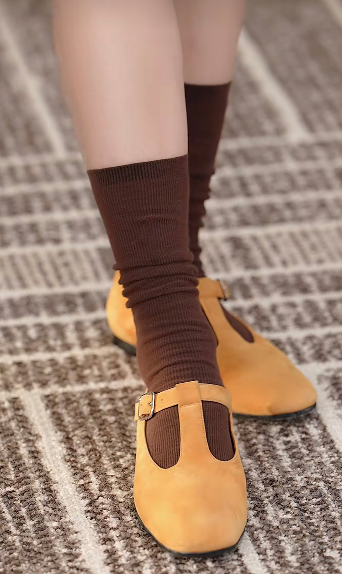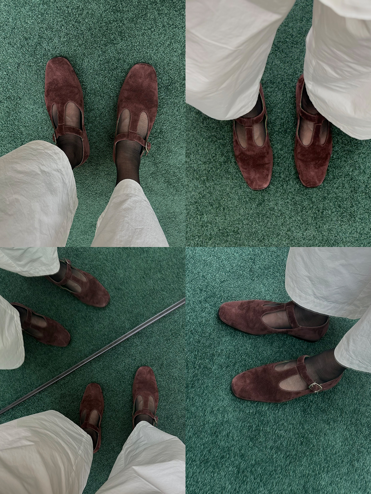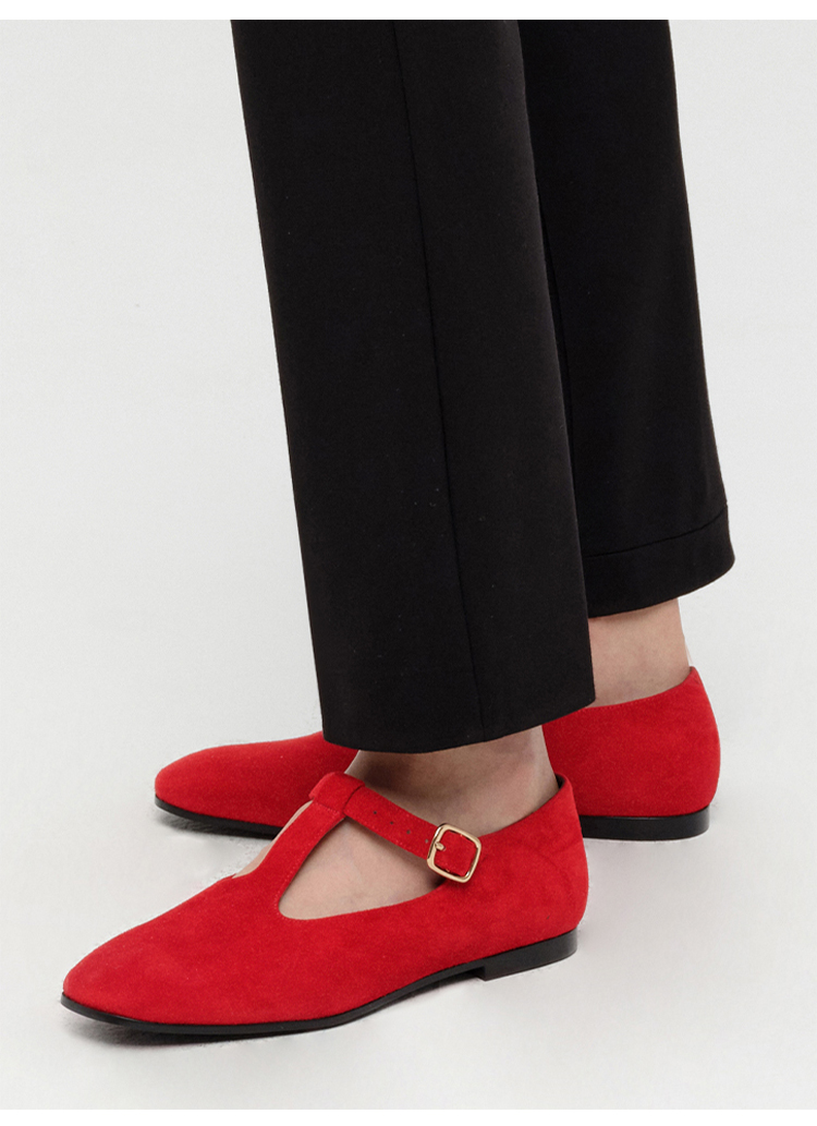 HIDEMI 【董生活同款】进口做旧麂皮复古方圆头宽带玛丽珍平底鞋 复古红/姜黄色/巧克力棕
