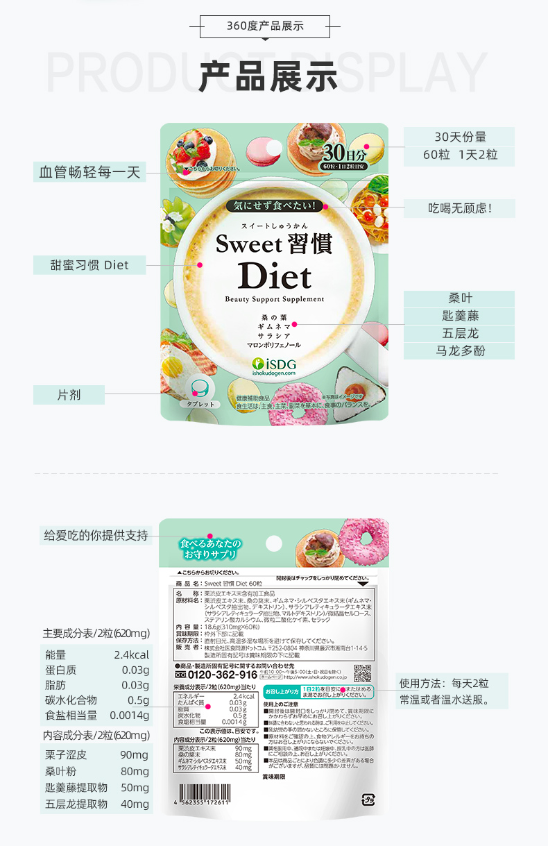 【品牌直营】ISDG 日本进口sweet甜蜜习惯抗糖丸 60粒/袋 2028-01-06到期