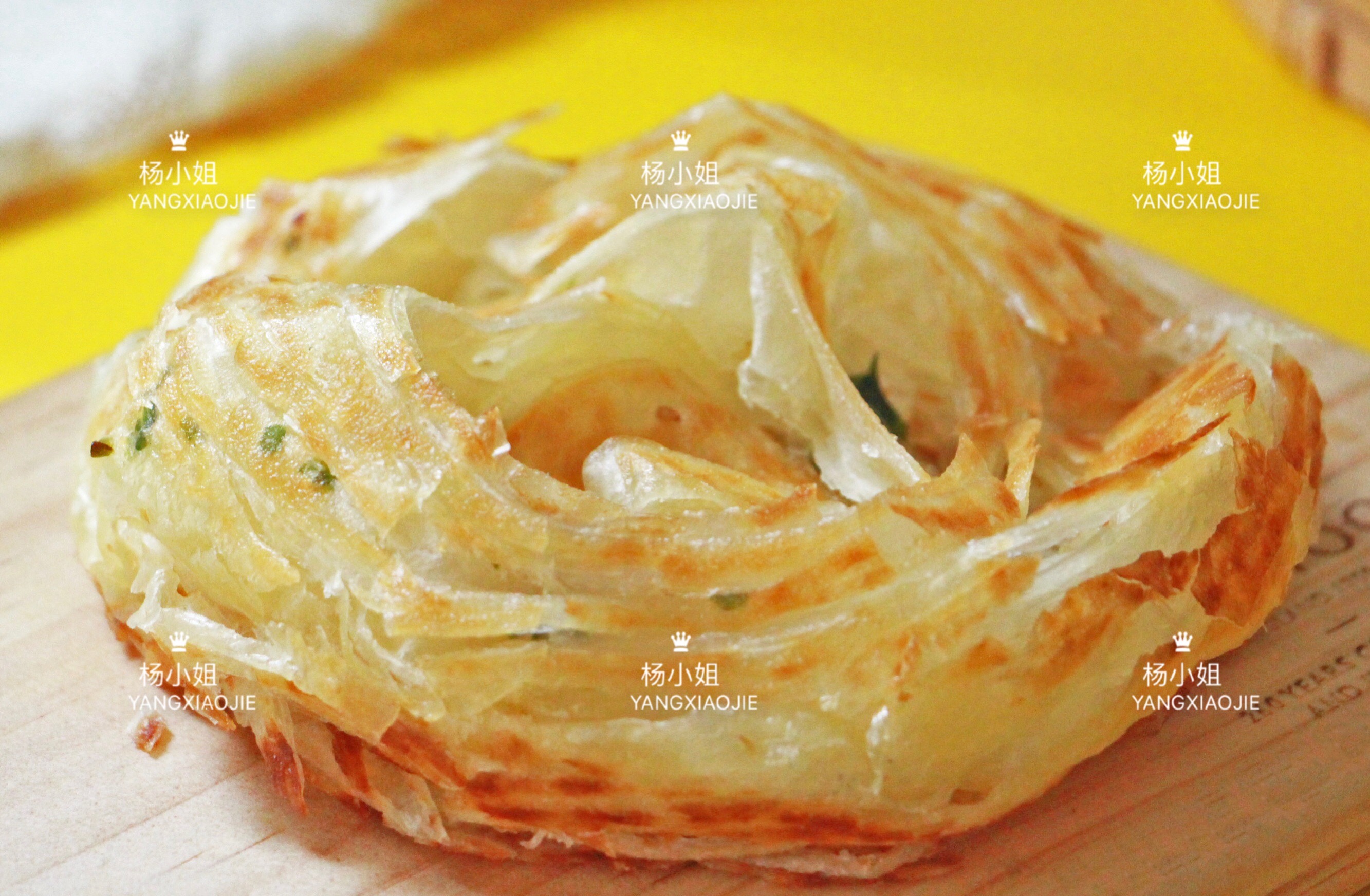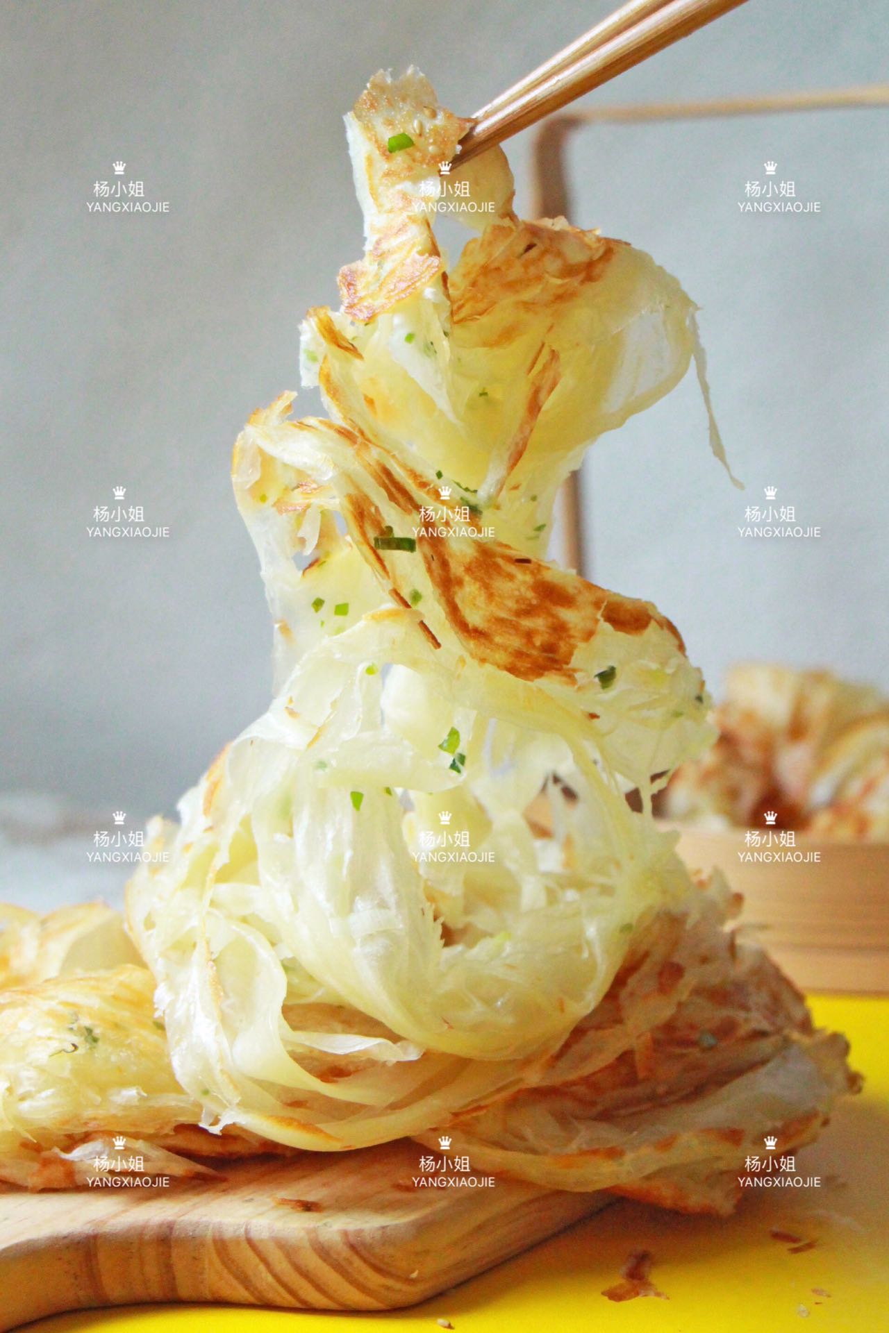 外皮金黄酥脆,内里松软筋道,层层分明,色泽泛黄透亮,用筷子挑起,呈现千层螺旋状。