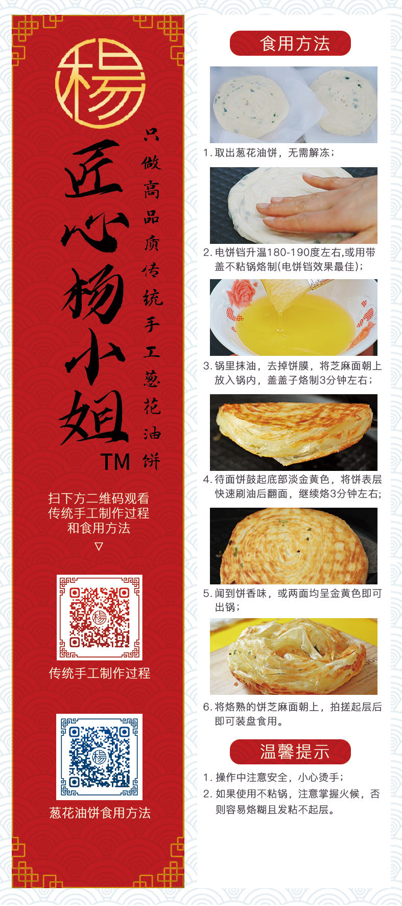 打开包装撕去薄膜,无需放油、无需加盐、无需解冻,直接放入平底锅,正反煎制六分钟,即可见证葱油饼的完美蜕变,早餐不再匆忙,既健康又饱腹。