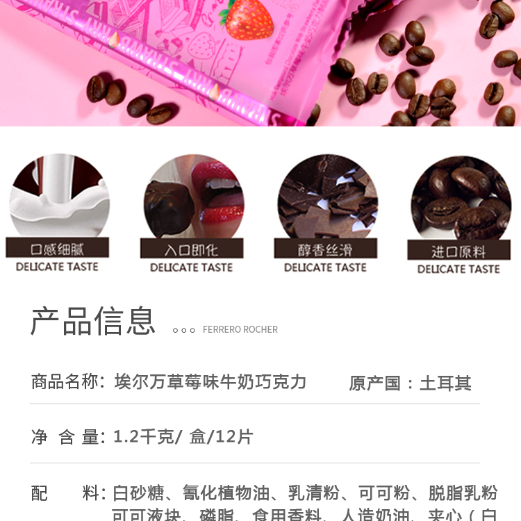 WWJ埃尔万100g牛奶巧克力味草莓味 榛子味