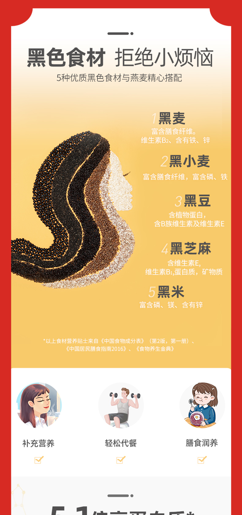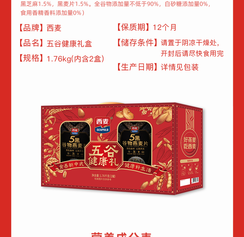 五谷健康礼(5黑)谷物燕麦片880gX2桶装0蔗糖高纤维早餐冲饮家庭囤货罐装锁鲜