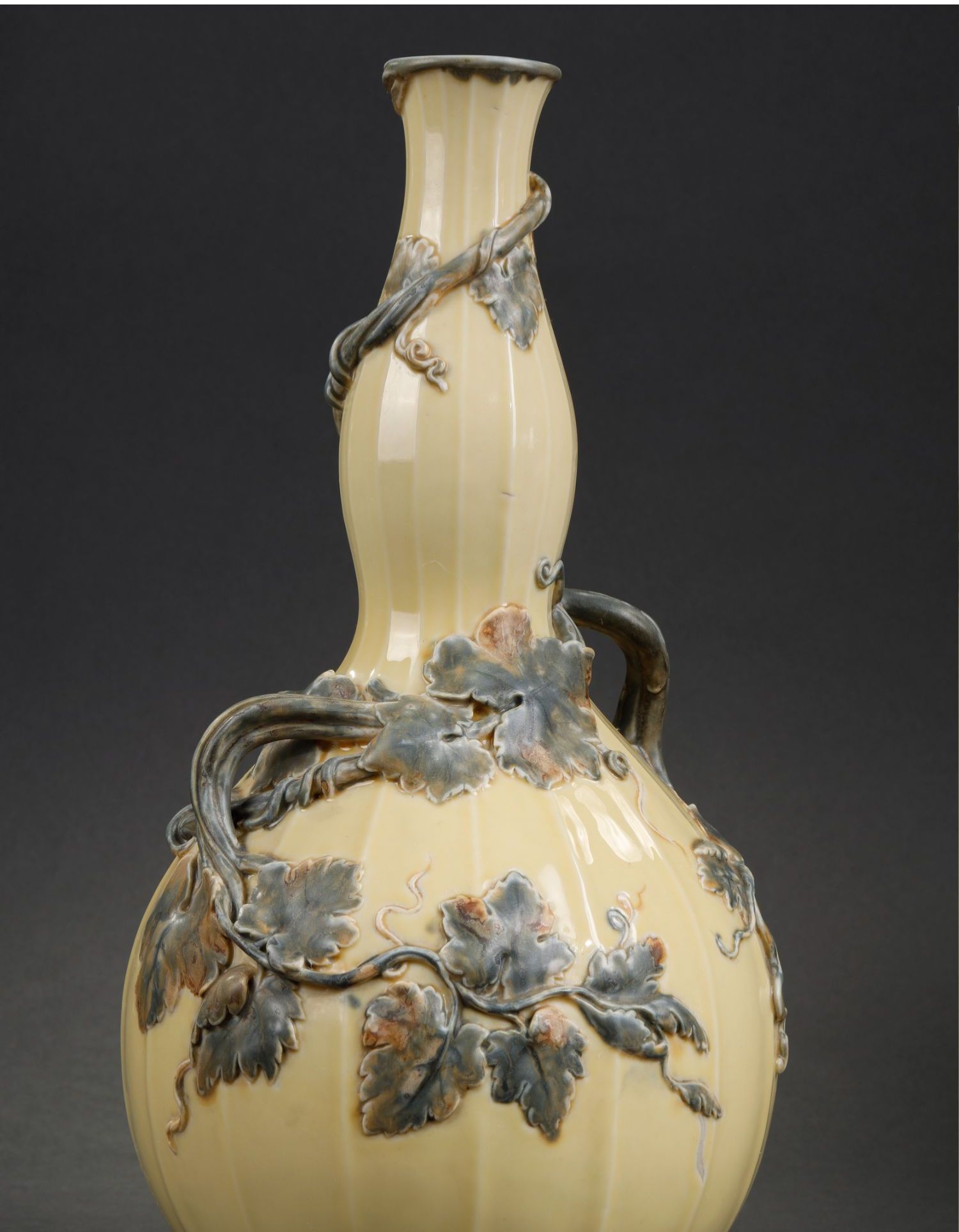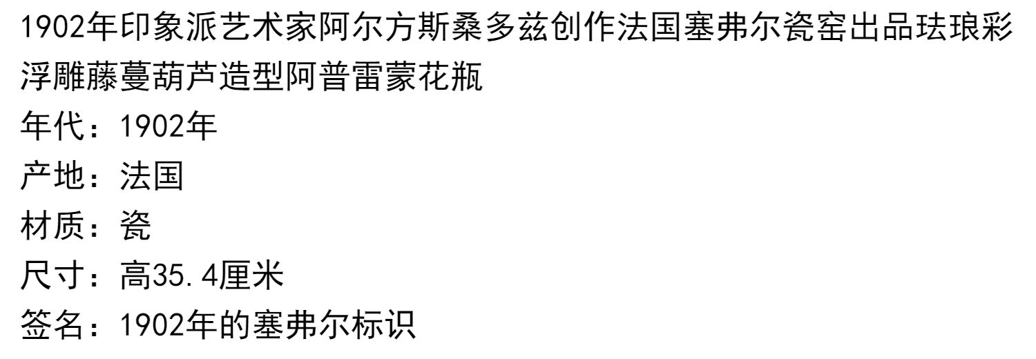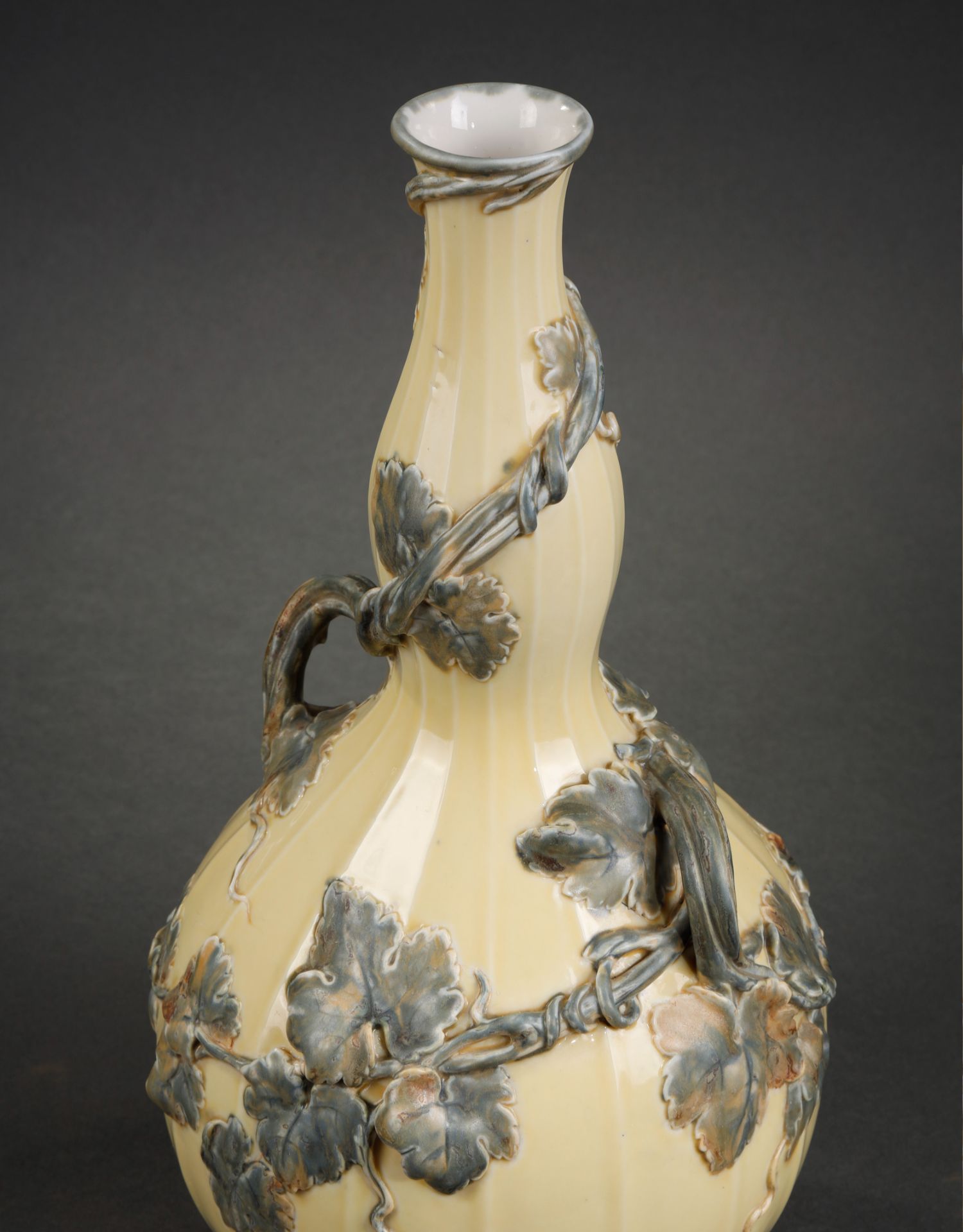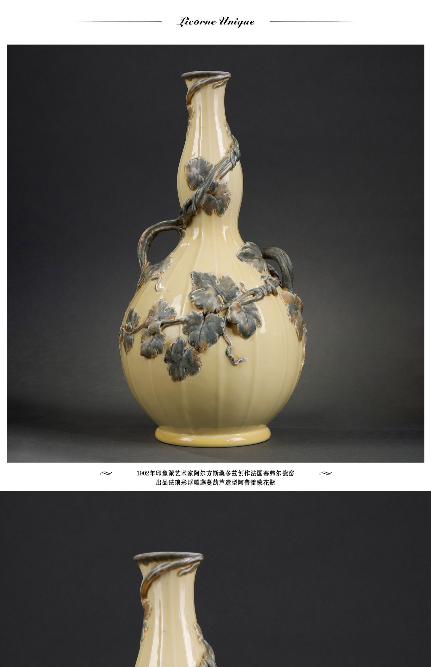 独角鹿西洋古董瓷器塞弗尔瓷窑珐琅彩浮雕藤蔓葫芦阿普雷蒙花瓶