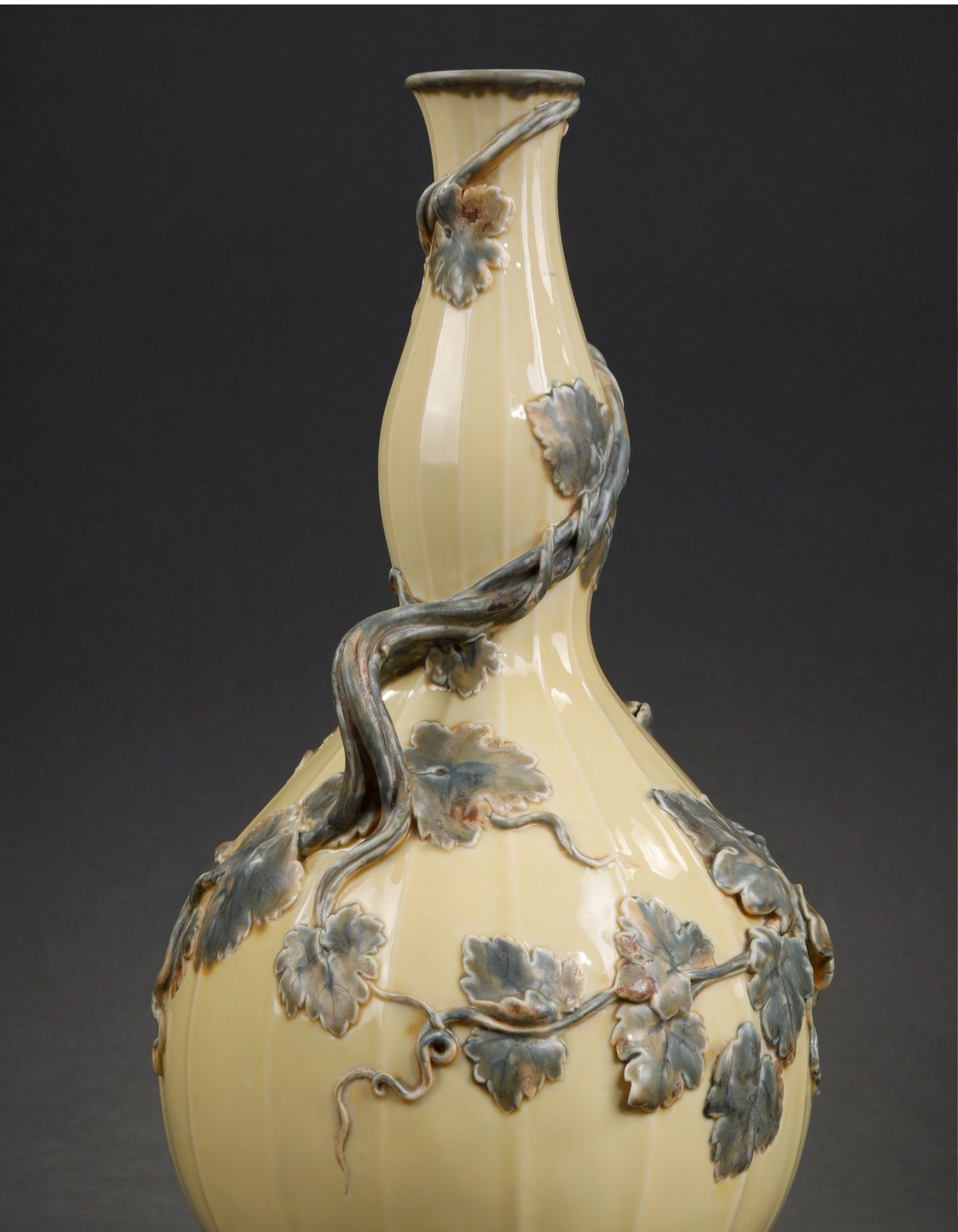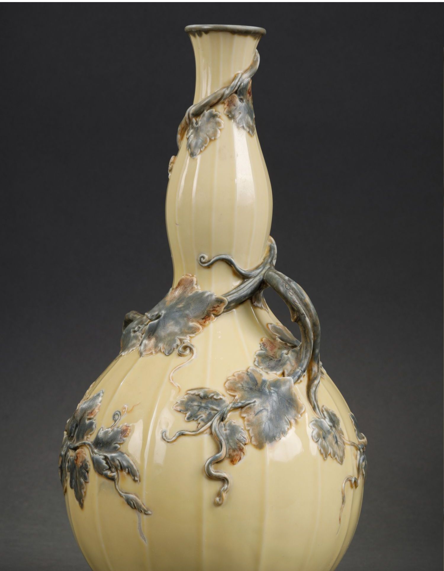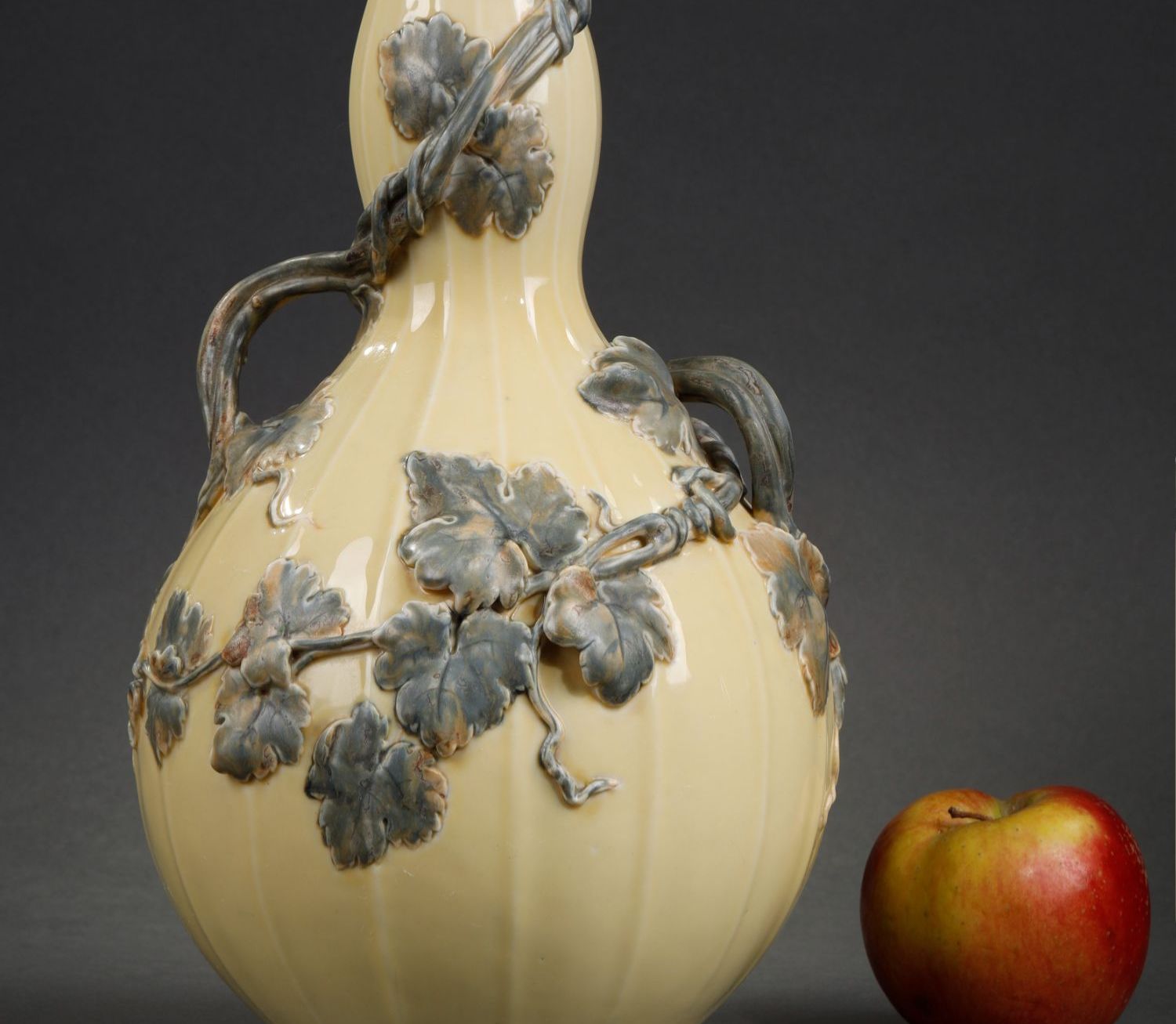 独角鹿西洋古董瓷器塞弗尔瓷窑珐琅彩浮雕藤蔓葫芦阿普雷蒙花瓶