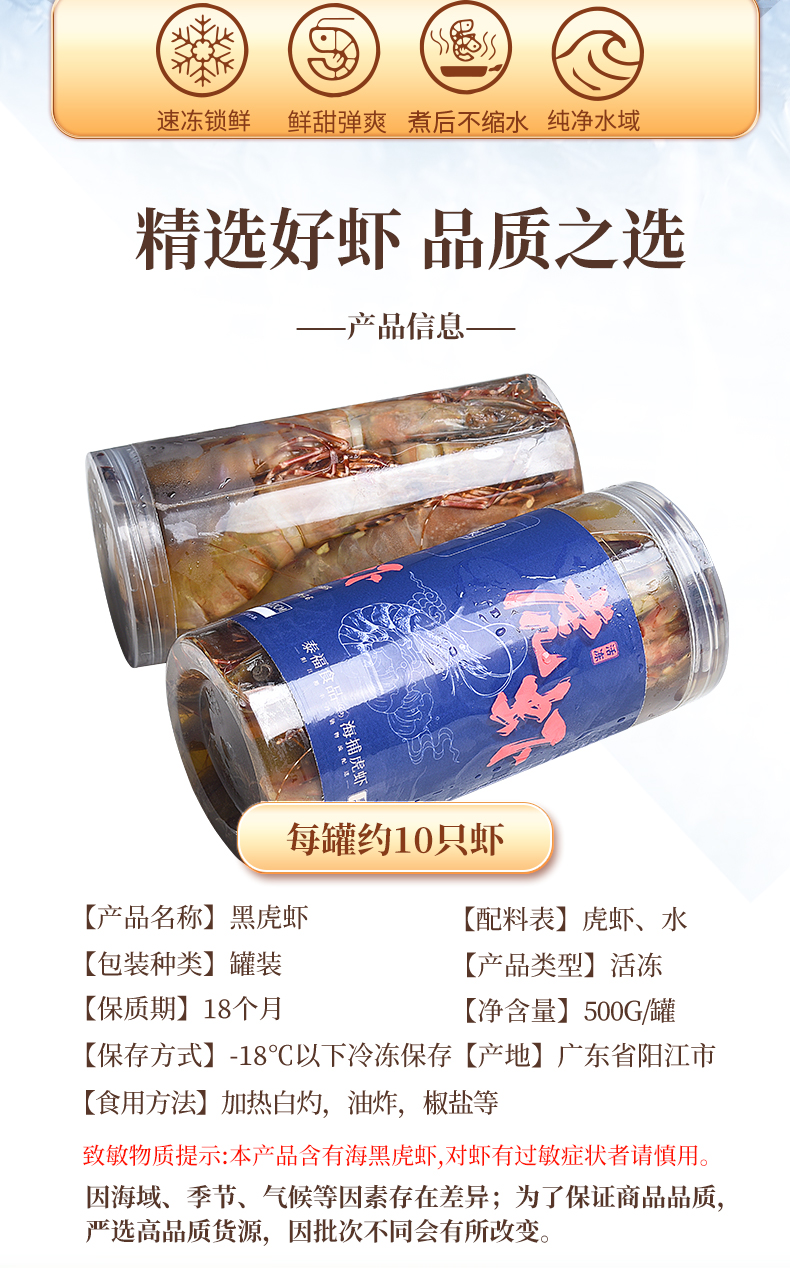 泰福·活冻野生虎虾500g/罐·野生海捕新鲜活冻【阳江】