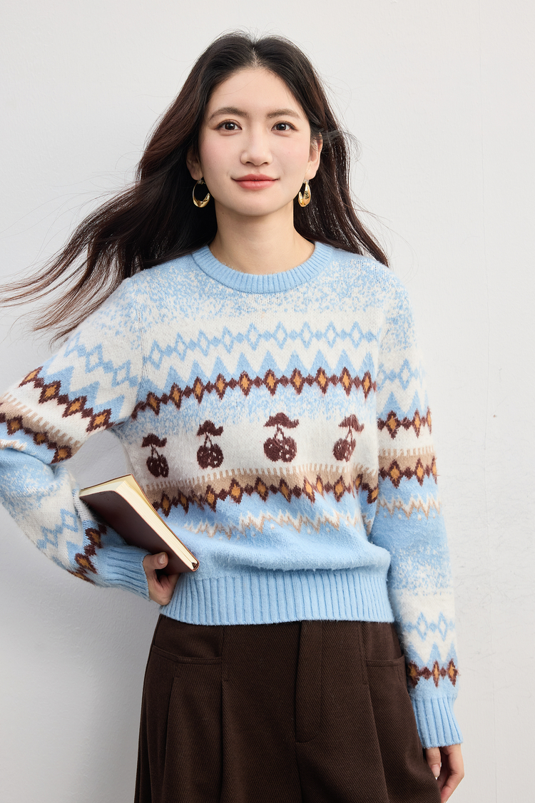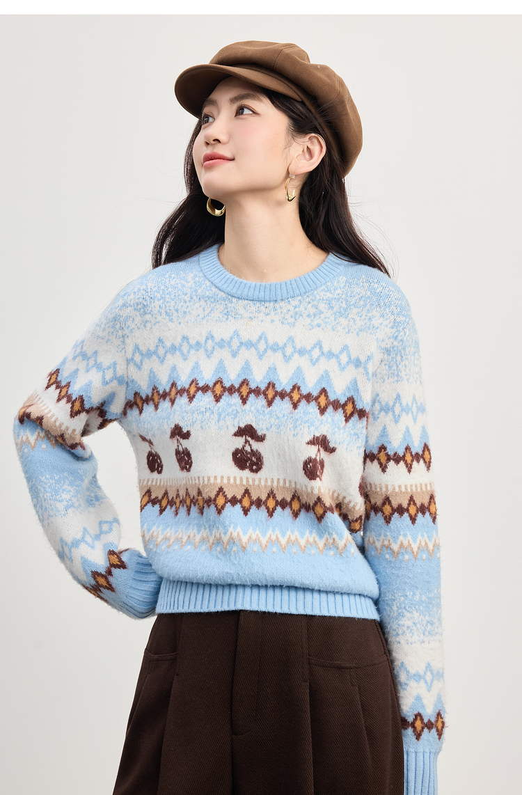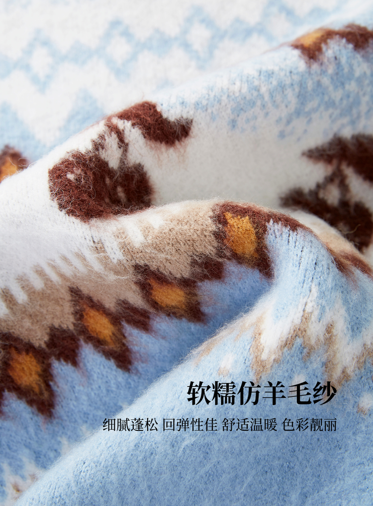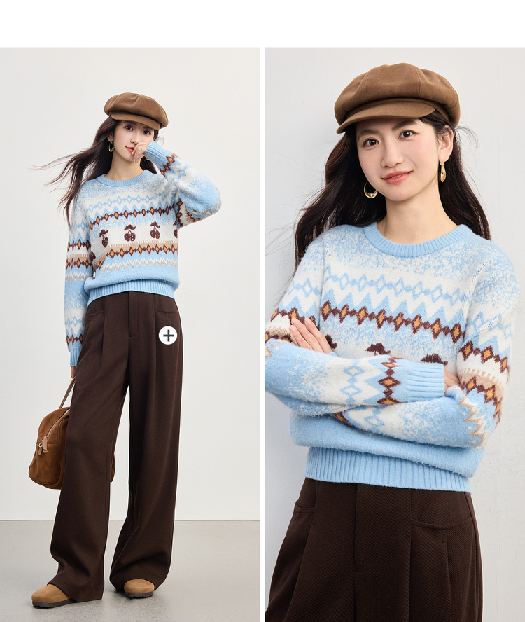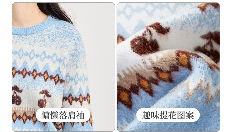 【周末秒杀】熙世界费尔岛系列提花毛衣女秋冬宽松休闲套头长袖针织衫2025新款