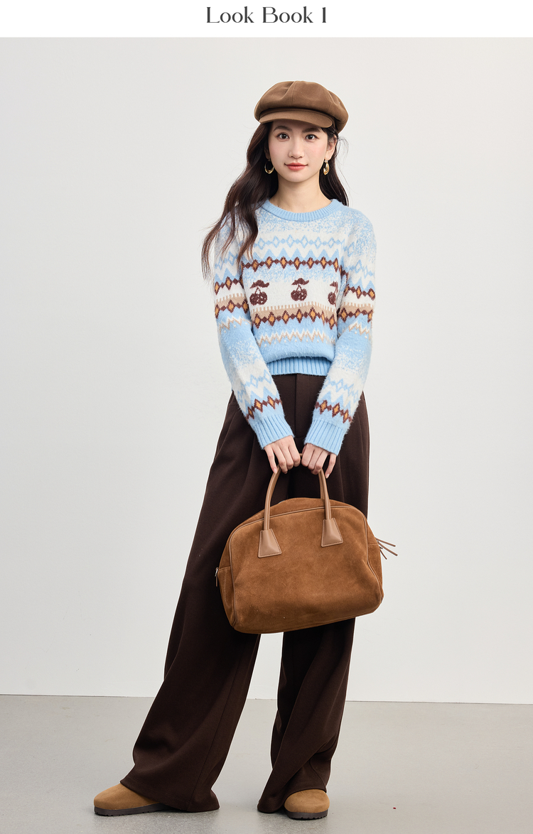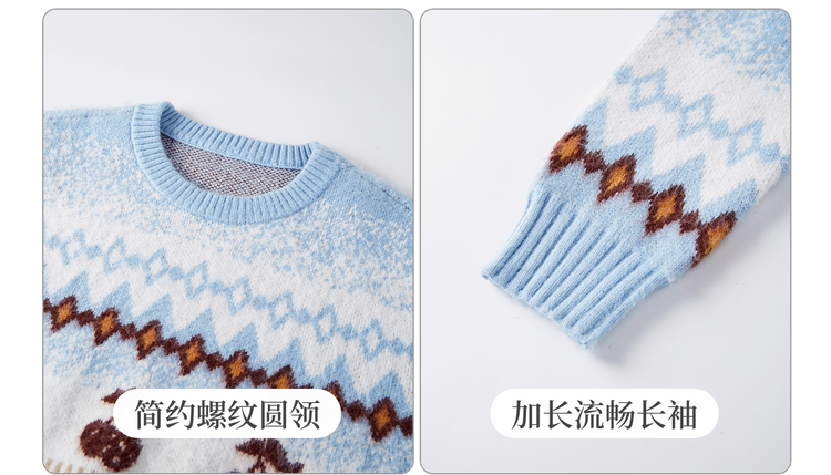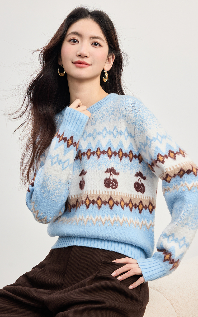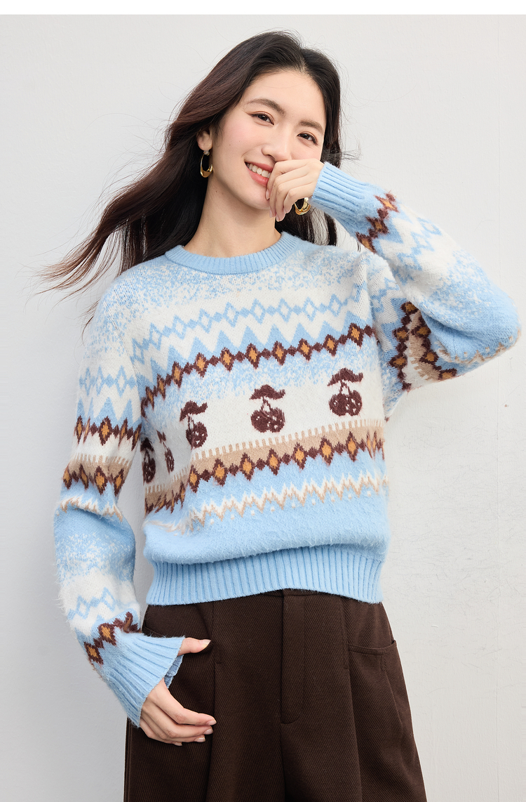 【周末秒杀】熙世界费尔岛系列提花毛衣女秋冬宽松休闲套头长袖针织衫2025新款