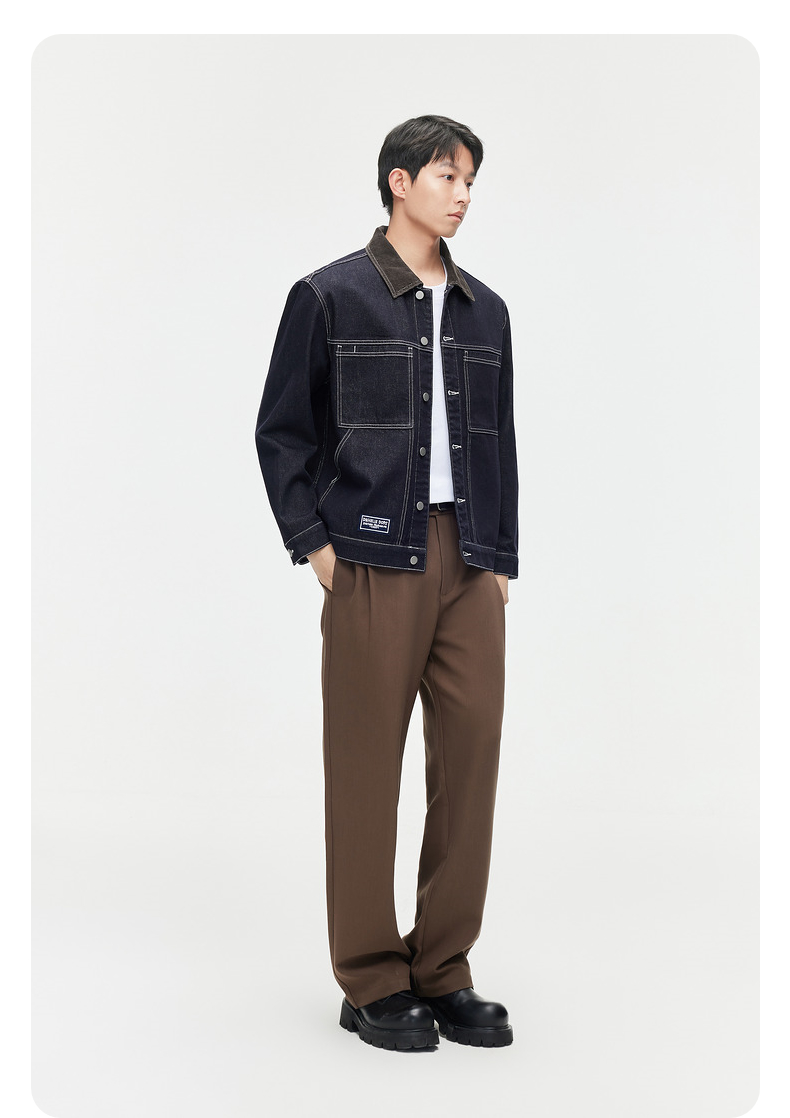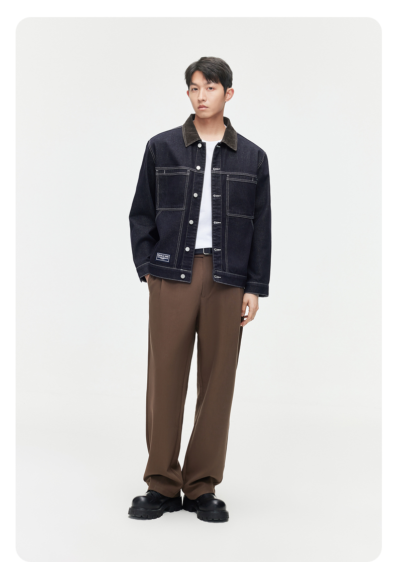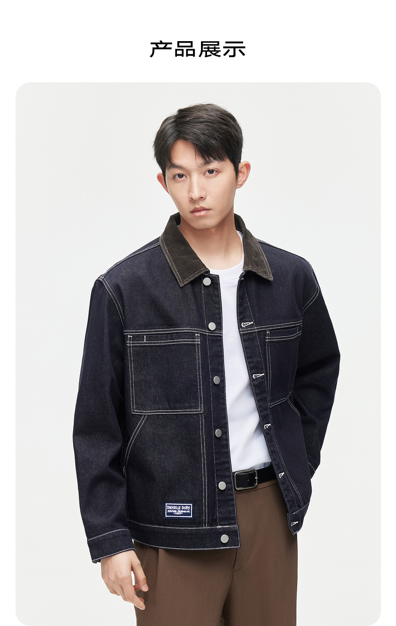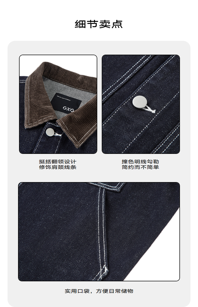 GXG春季热卖男装夹克撞色简约明线设计翻领牛仔夹克外套