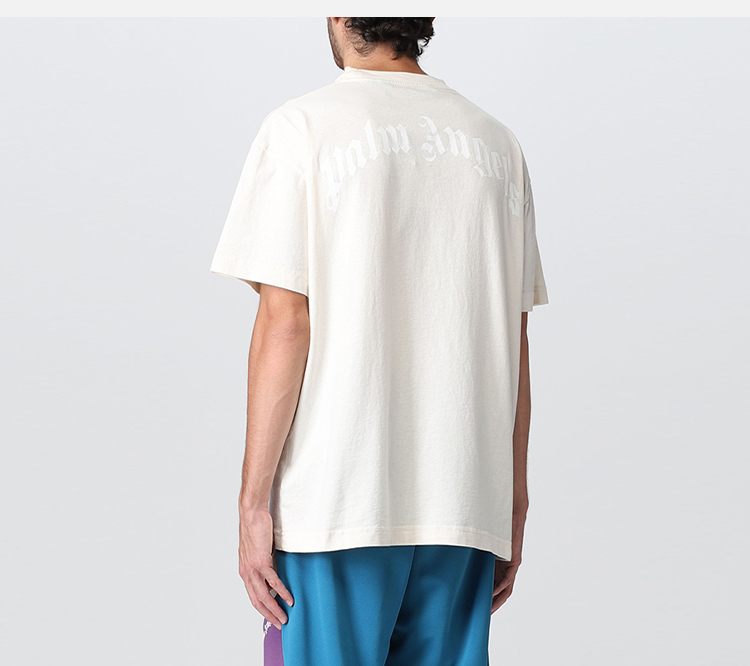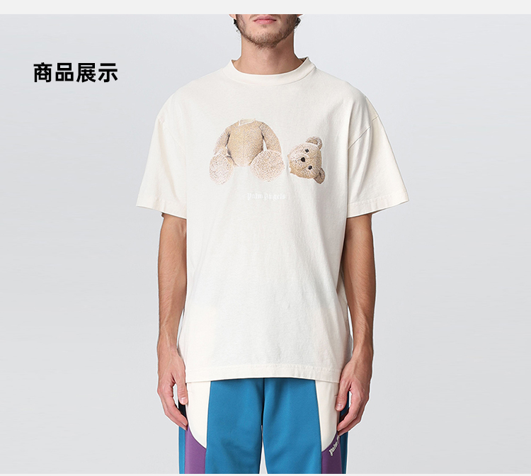 PALM ANGELS 棕榈天使 男士棉质断头熊徽标印花圆领短袖T恤 米黄色 PMAA001F22JER005 0460