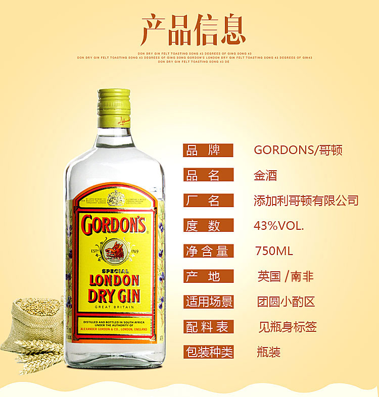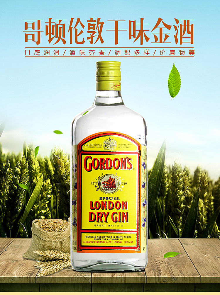 哥顿Gordon's金酒40度750ml*1瓶/2瓶
