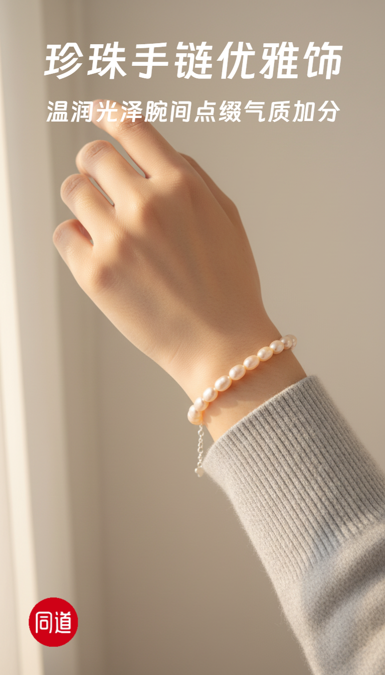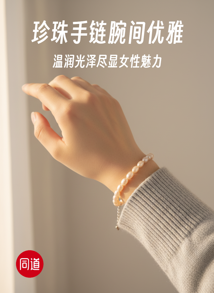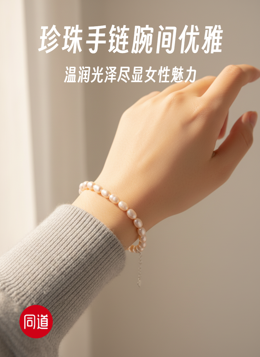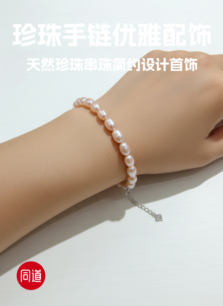 香槟金无瑕 5-6mm大米珠珍珠手链 纯银延长扣 主推 温润通勤 [发:35]
