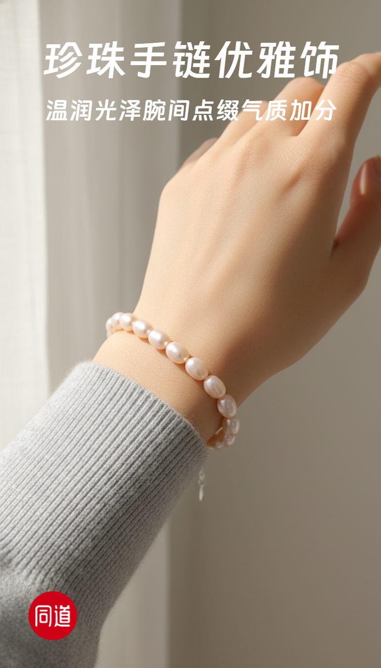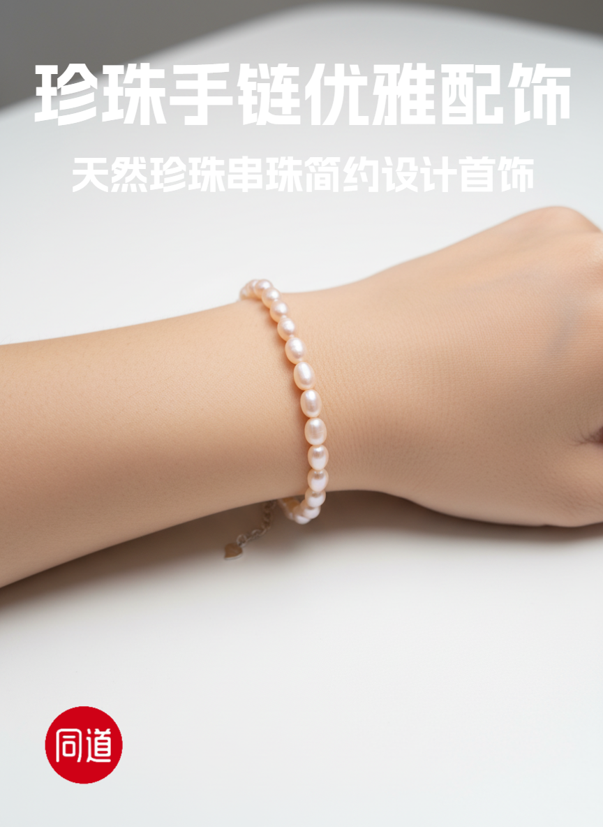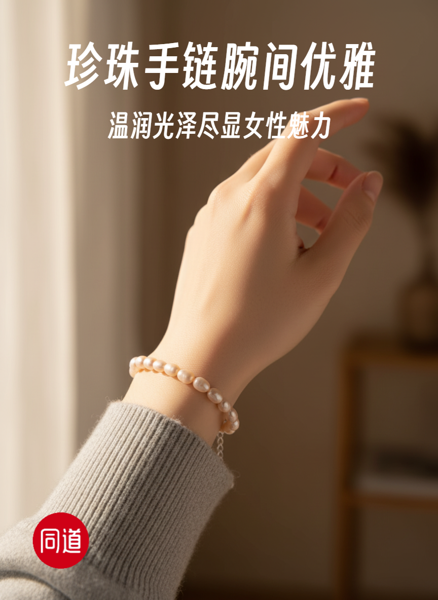 香槟金无瑕 5-6mm大米珠珍珠手链 纯银延长扣 主推 温润通勤 [发:35]