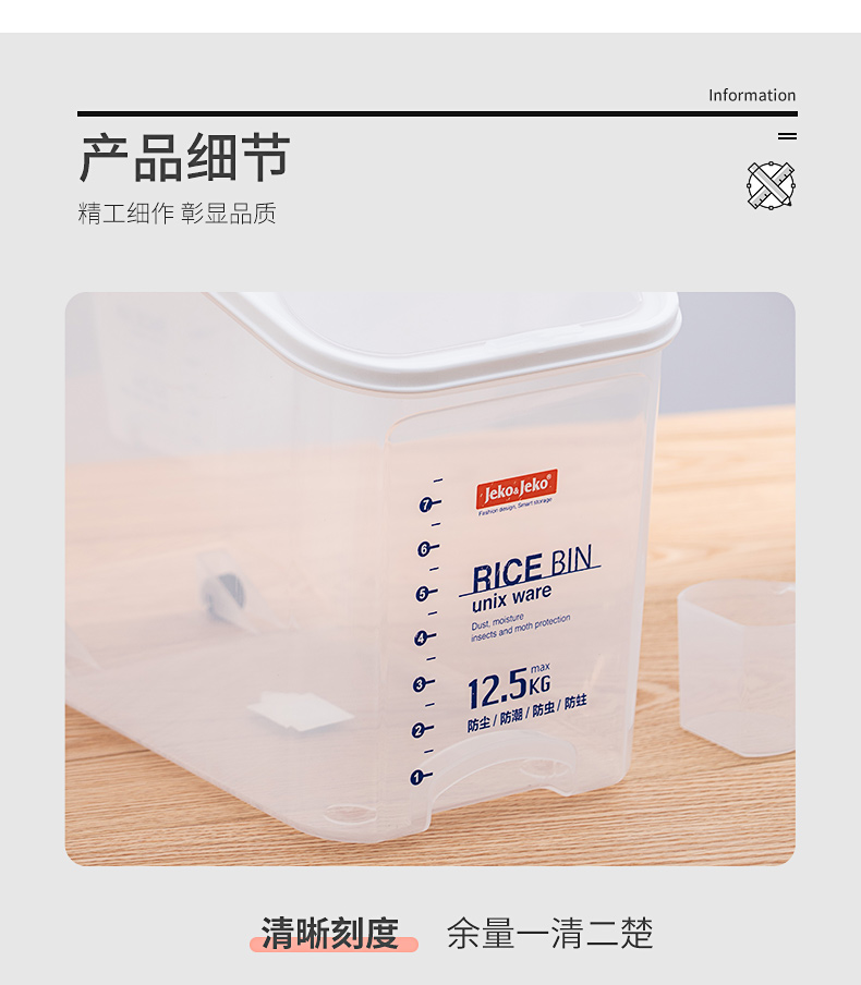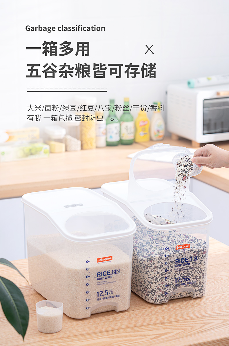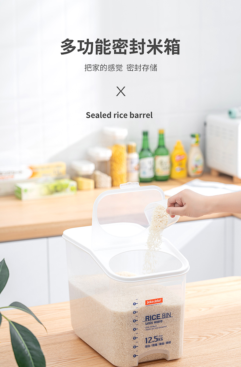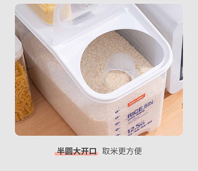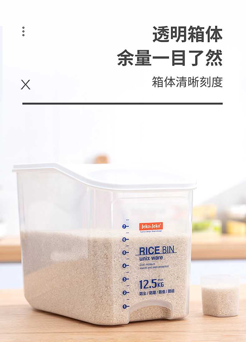 捷扣JEKO 密封米桶大容量25斤家用厨房透明米箱防虫米缸密封罐大米面粉粮食密封收纳盒塑料储物罐SWB-5488