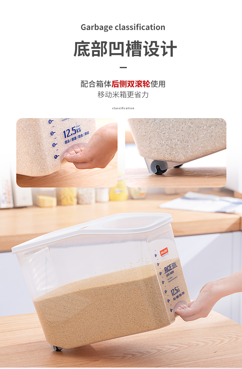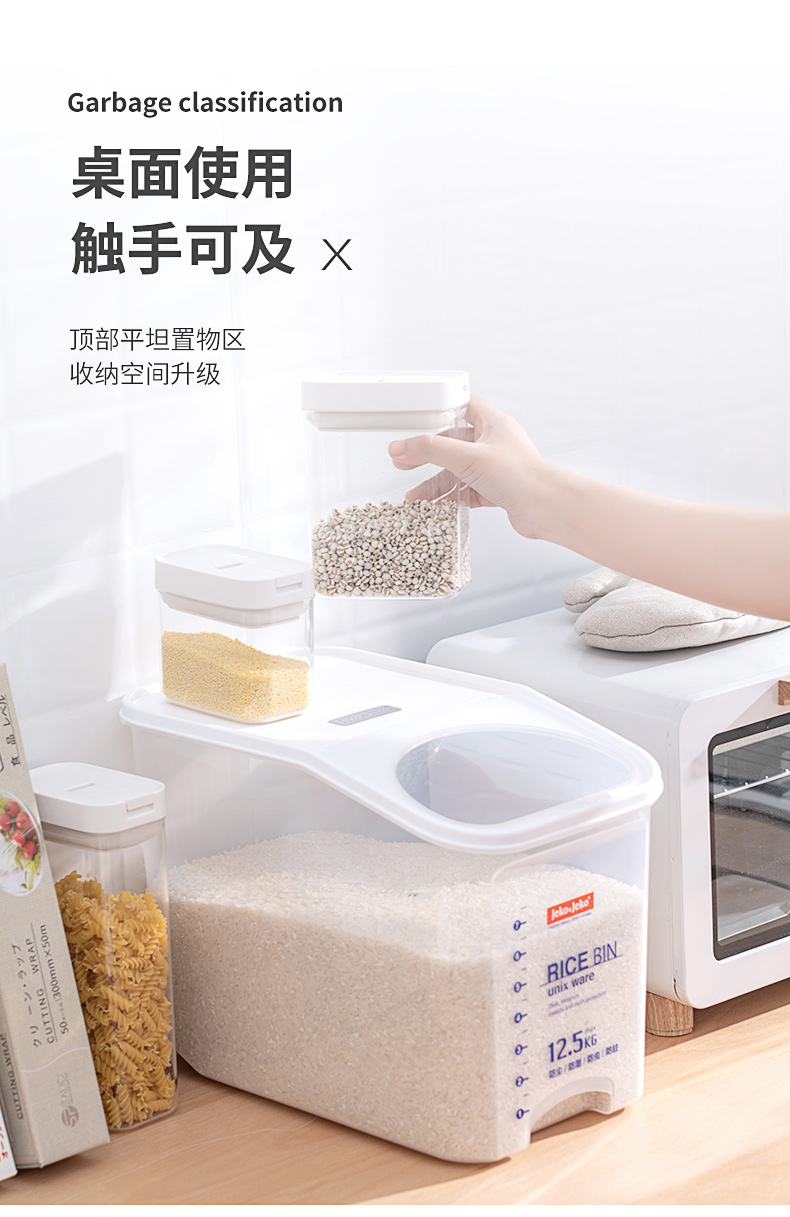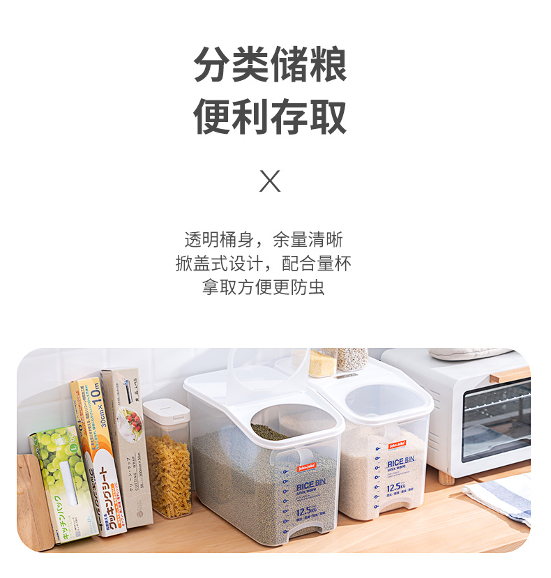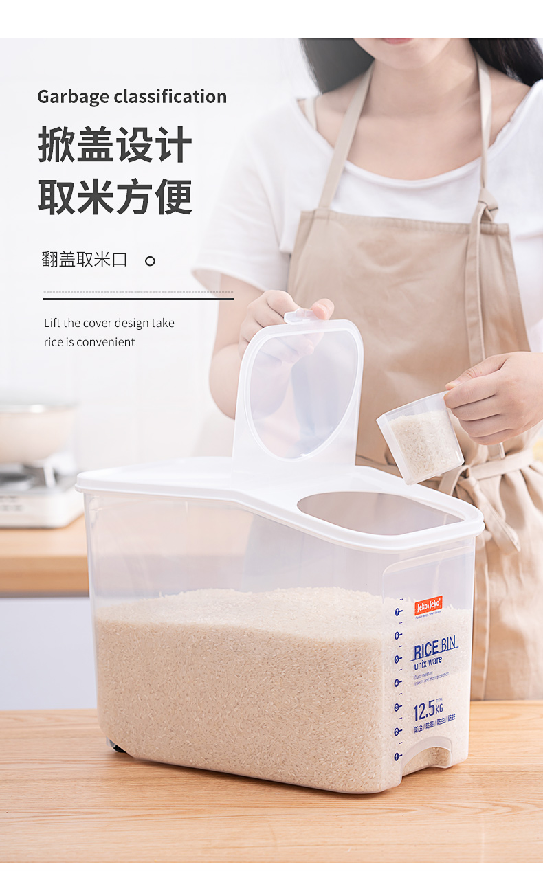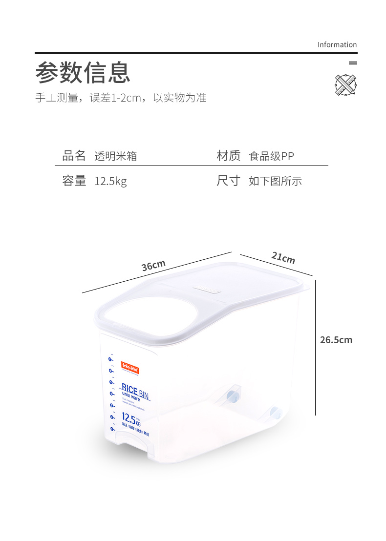 捷扣JEKO 密封米桶大容量25斤家用厨房透明米箱防虫米缸密封罐大米面粉粮食密封收纳盒塑料储物罐SWB-5488