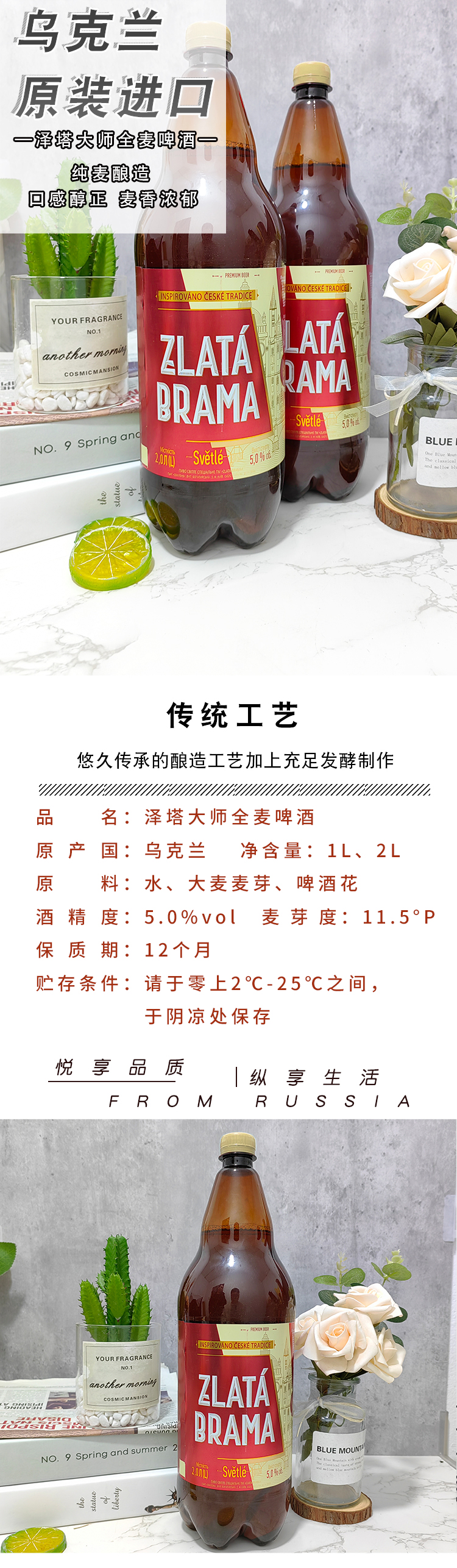 乌克兰进口泽塔大师全麦啤酒2L