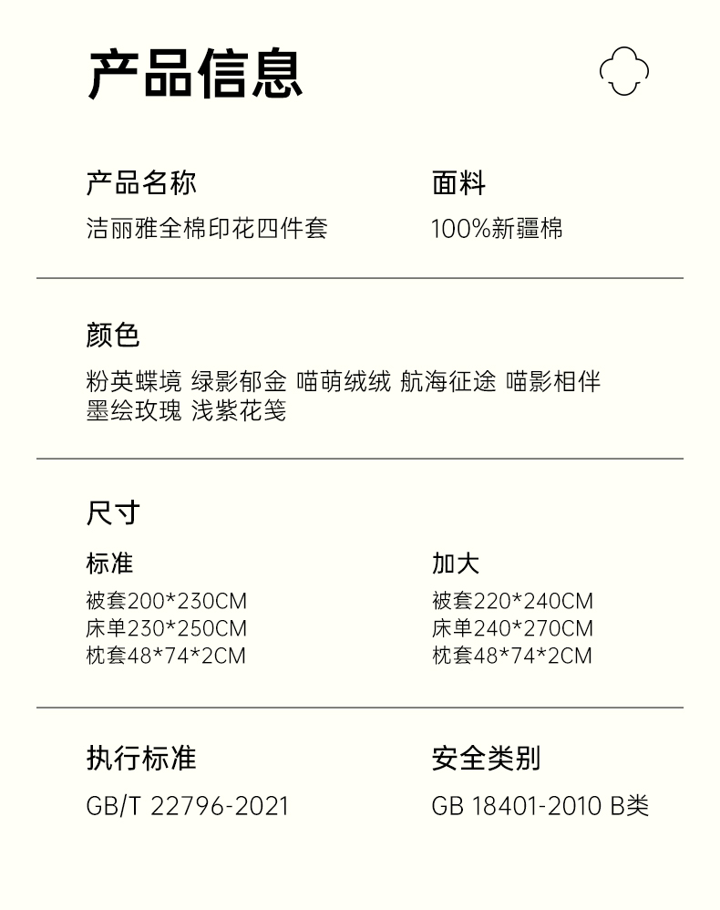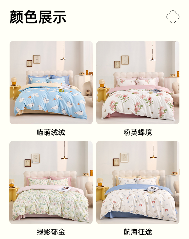 【宠粉派对】洁丽雅四件套纯棉拉链款全棉被套枕套被罩印花床上用品