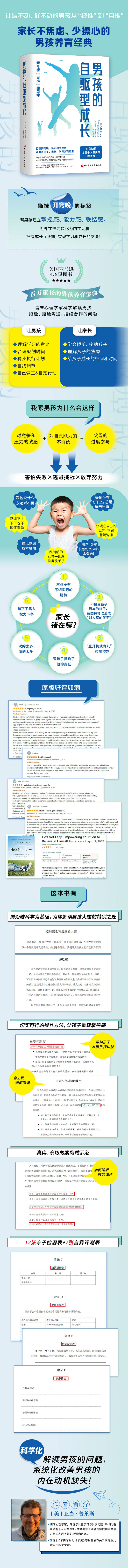 临床心理学家普莱斯博士在书中对“为什么男孩的表现总让人头疼”的问题给与了全新的解读和诠释。这本书对这一亟需探讨的话题给出了重要的观点。——美国《图书馆杂志》