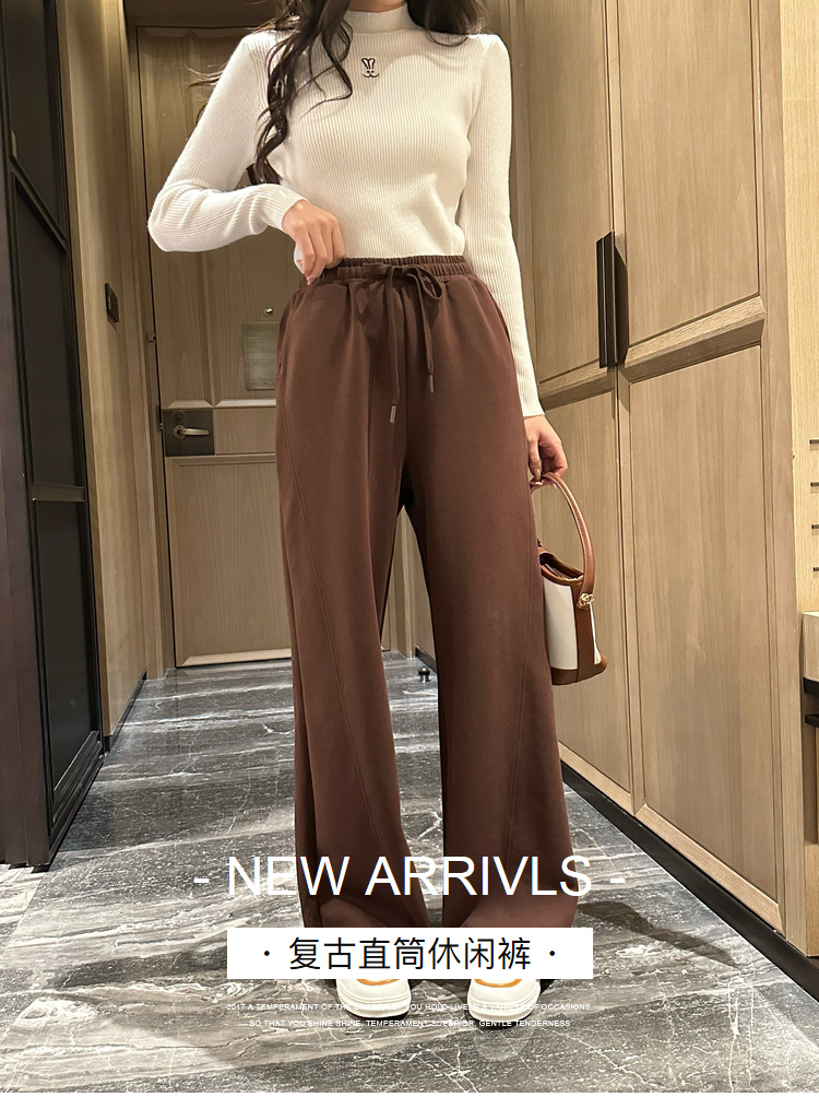 【清仓69】奢姿2024年秋季新款大码女装复古遮肉裤子胖妹妹系绳直筒休闲裤9943569015