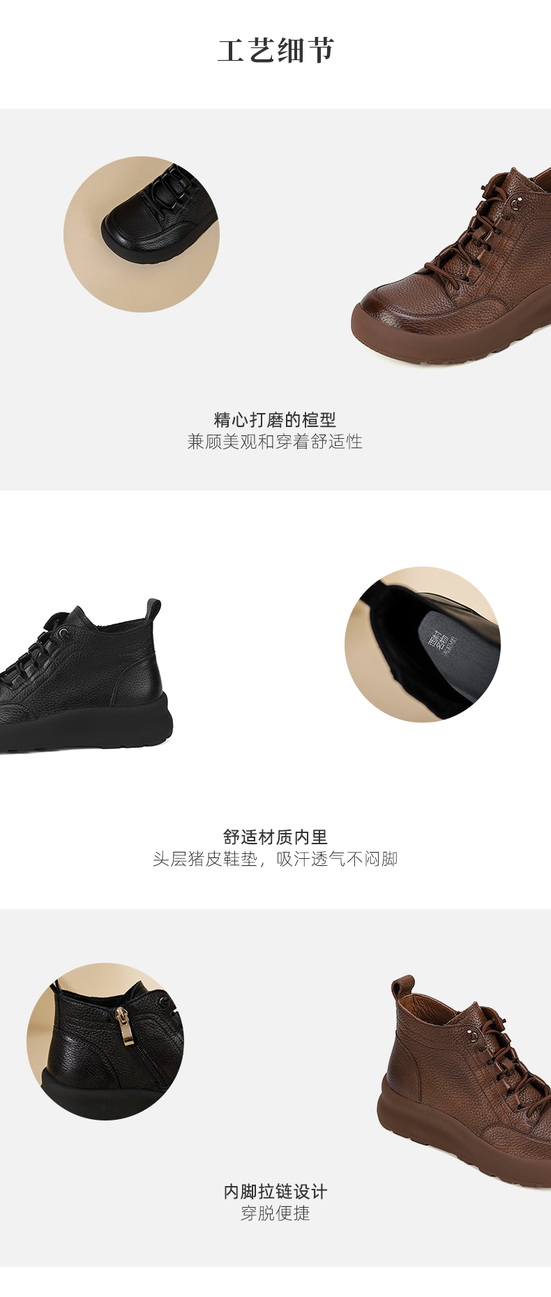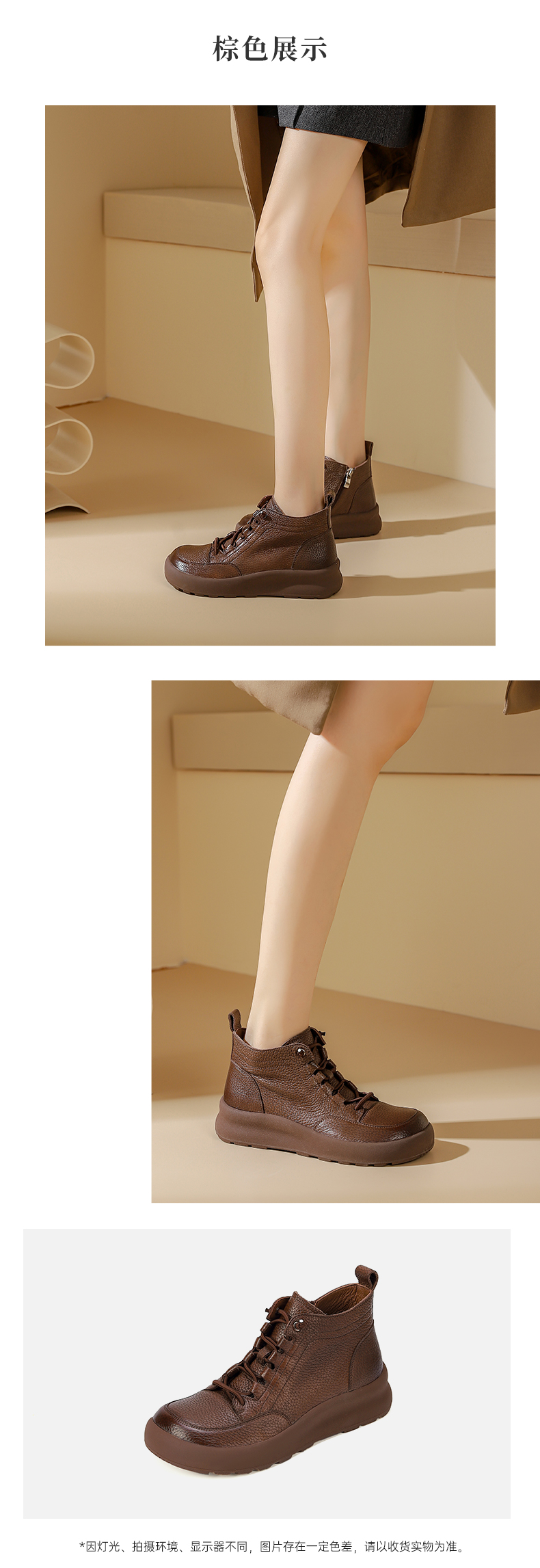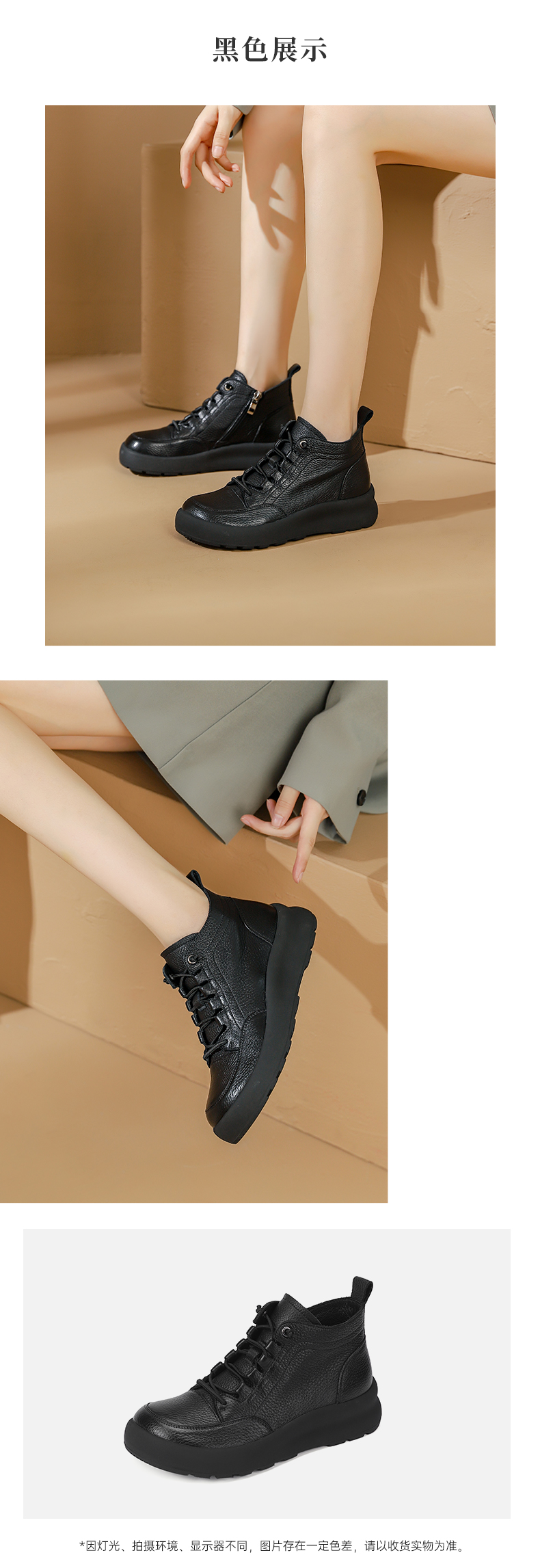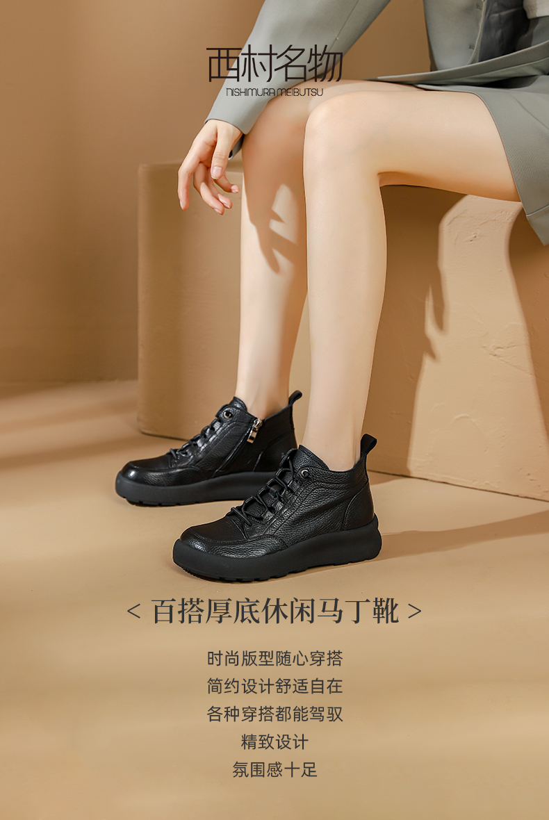 西村名物2023年秋季新款百搭厚底真皮马丁靴平底英伦风圆头休闲T23DS44081