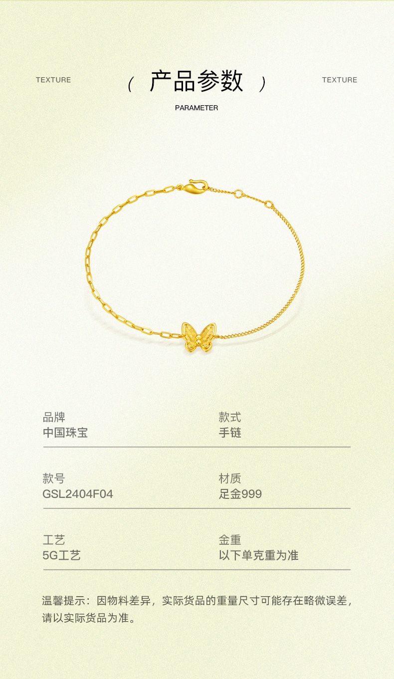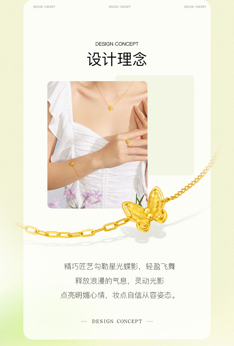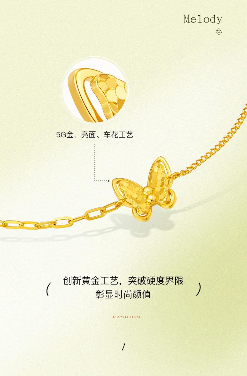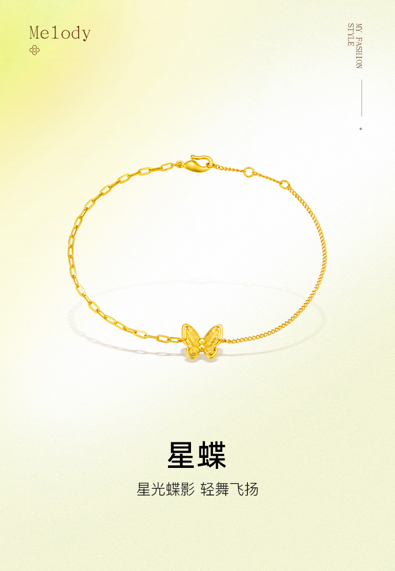 「追光」星蝶黄金足金蝴蝶爆闪手链