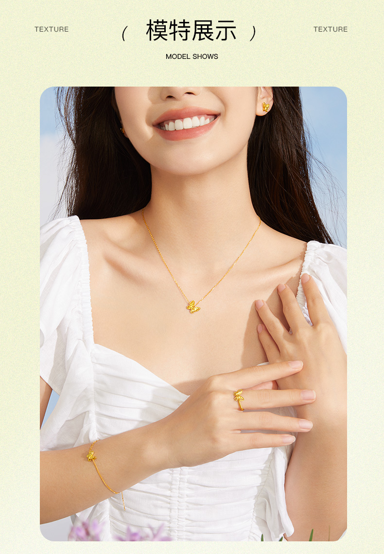 【预售】「美好金」蝶恋同心古法点钻黄金足金蝴蝶手链